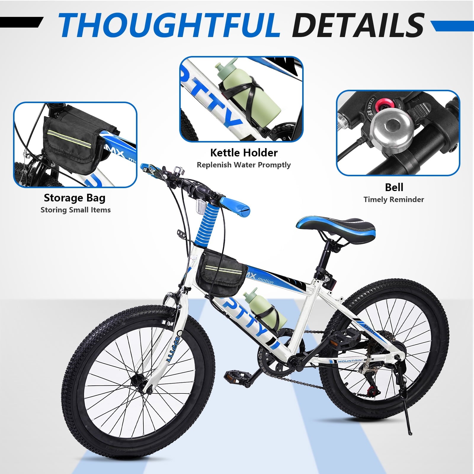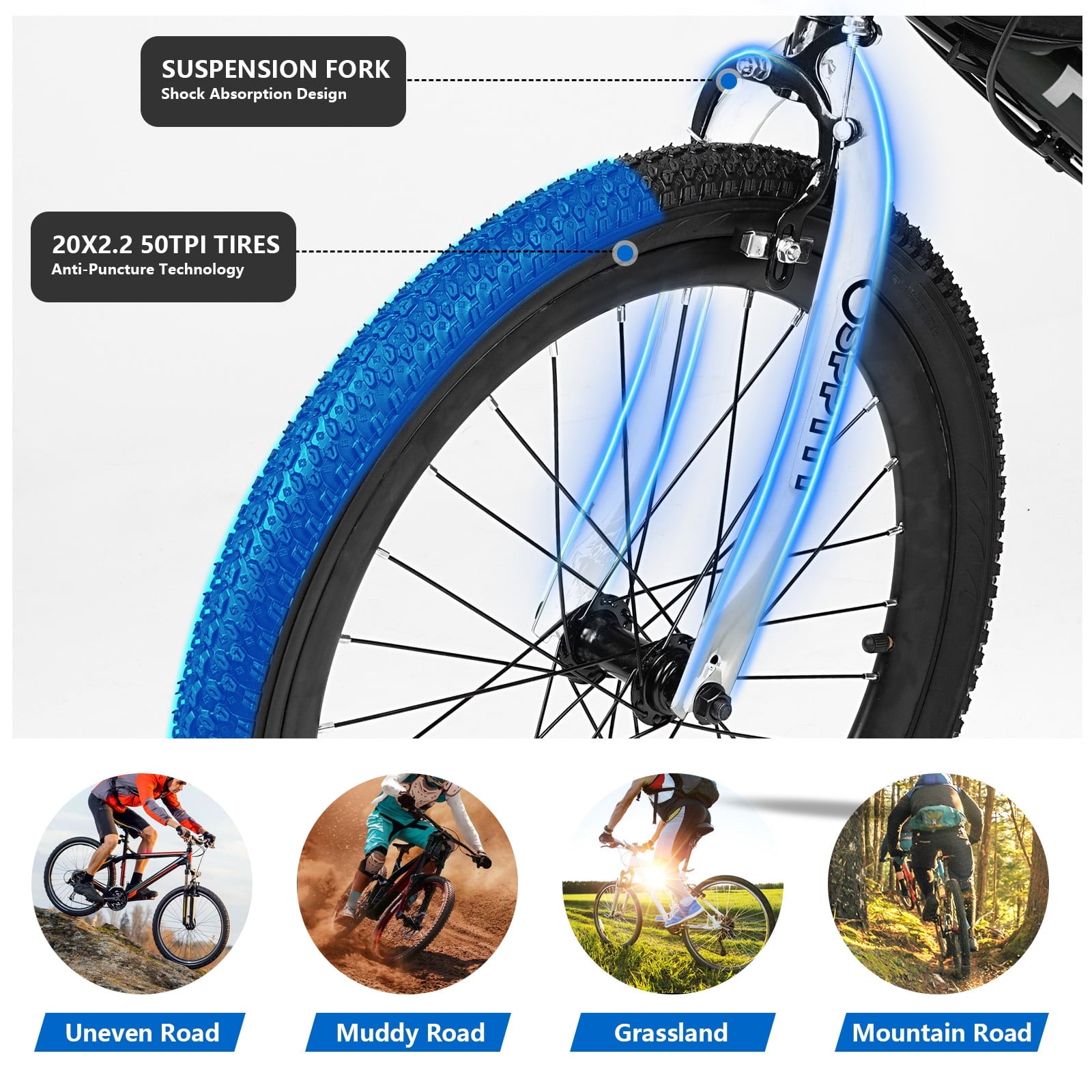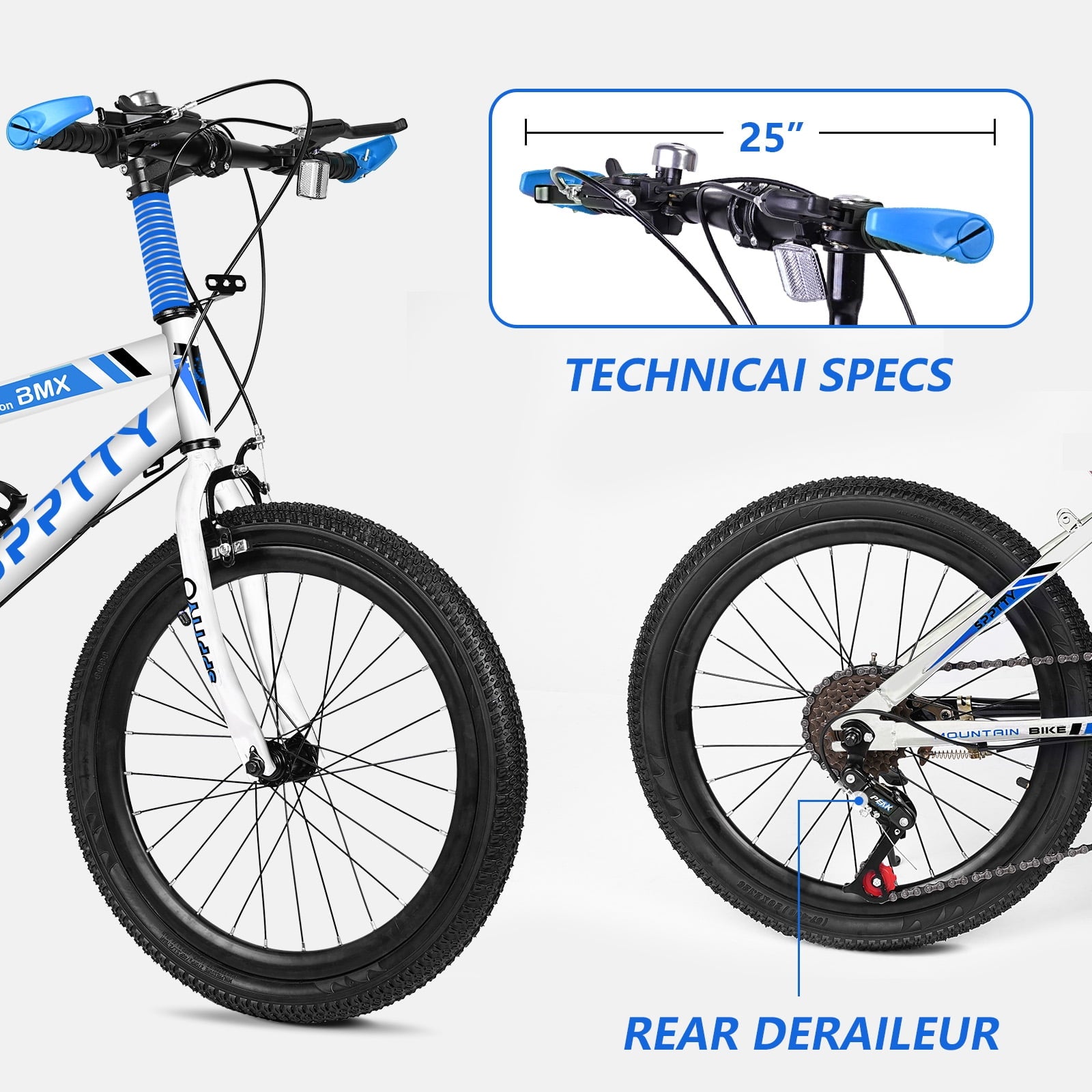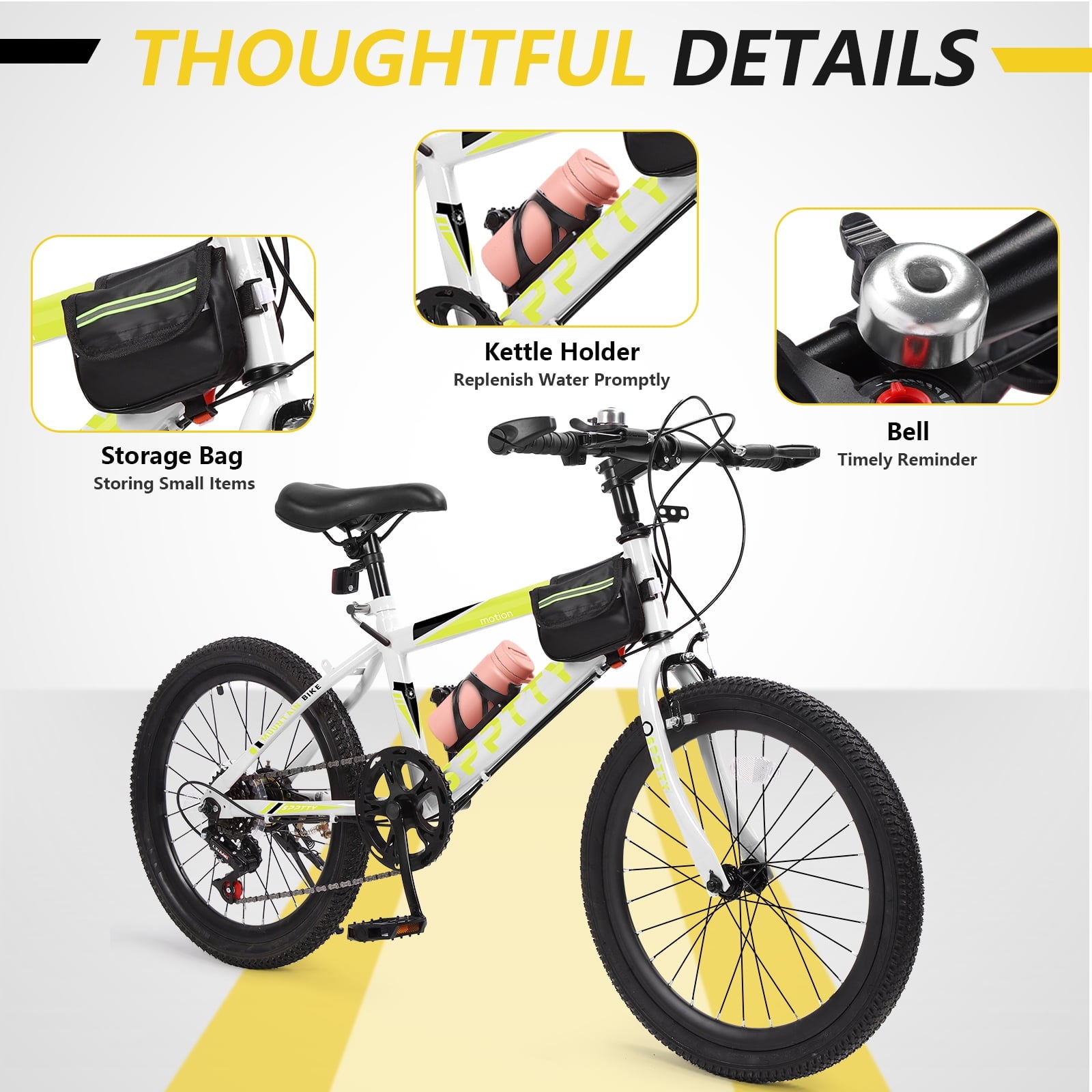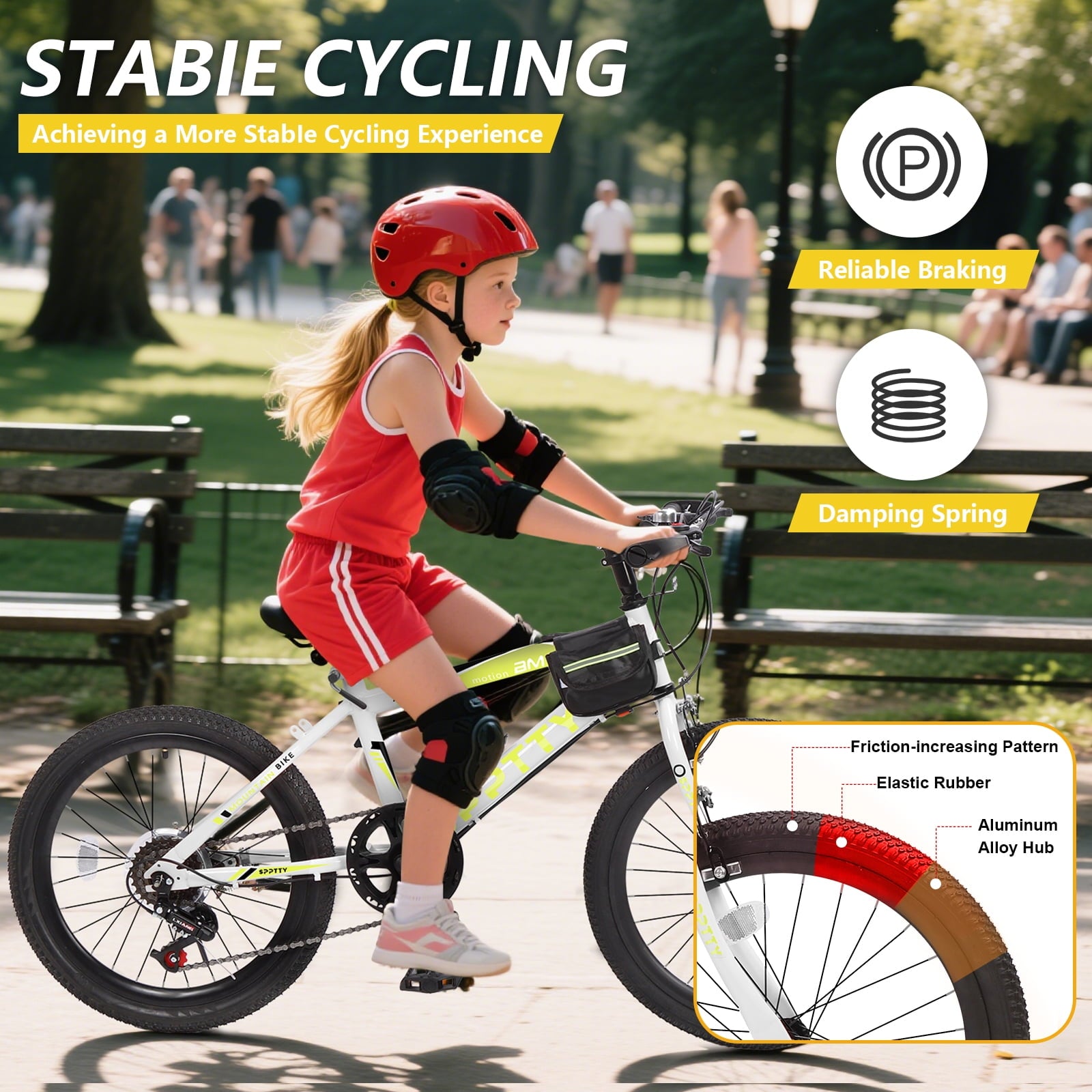 Discover the SPPTTY 20-24 inch Bike, a versatile mountain bike designed for men and women. Bicycles featuring a durable carbon steel frame, a suspension fork to absorb bumps, and 6-speed gears for easy terrain adaptation, this bike delivers a comfortable and reliable riding experience.The wide 2-inch tires provide excellent grip and stability, while the rear mechanical disc brakes ensure safe and reliable stopping power in any weather conditions.With an adjustable seat post and an aerodynamic triangular structure, this bike offers a customized fit and a sleek, sporty appearance, making it the perfect companion for your outdoor adventures.