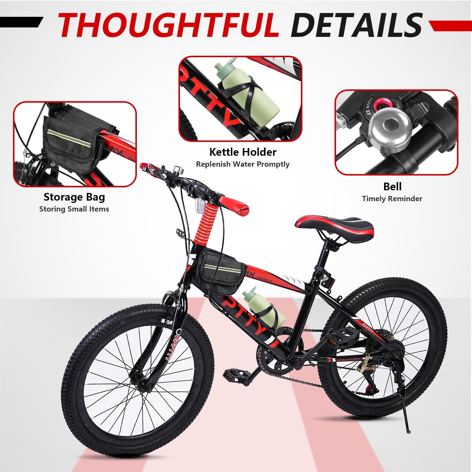 20 inch Mountain Bike,6-Speed Bicycles for Boys Girls,Comfort Saddle,Red