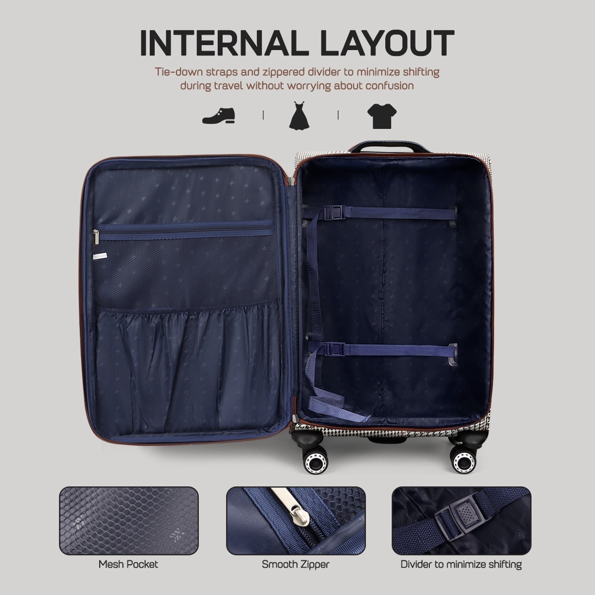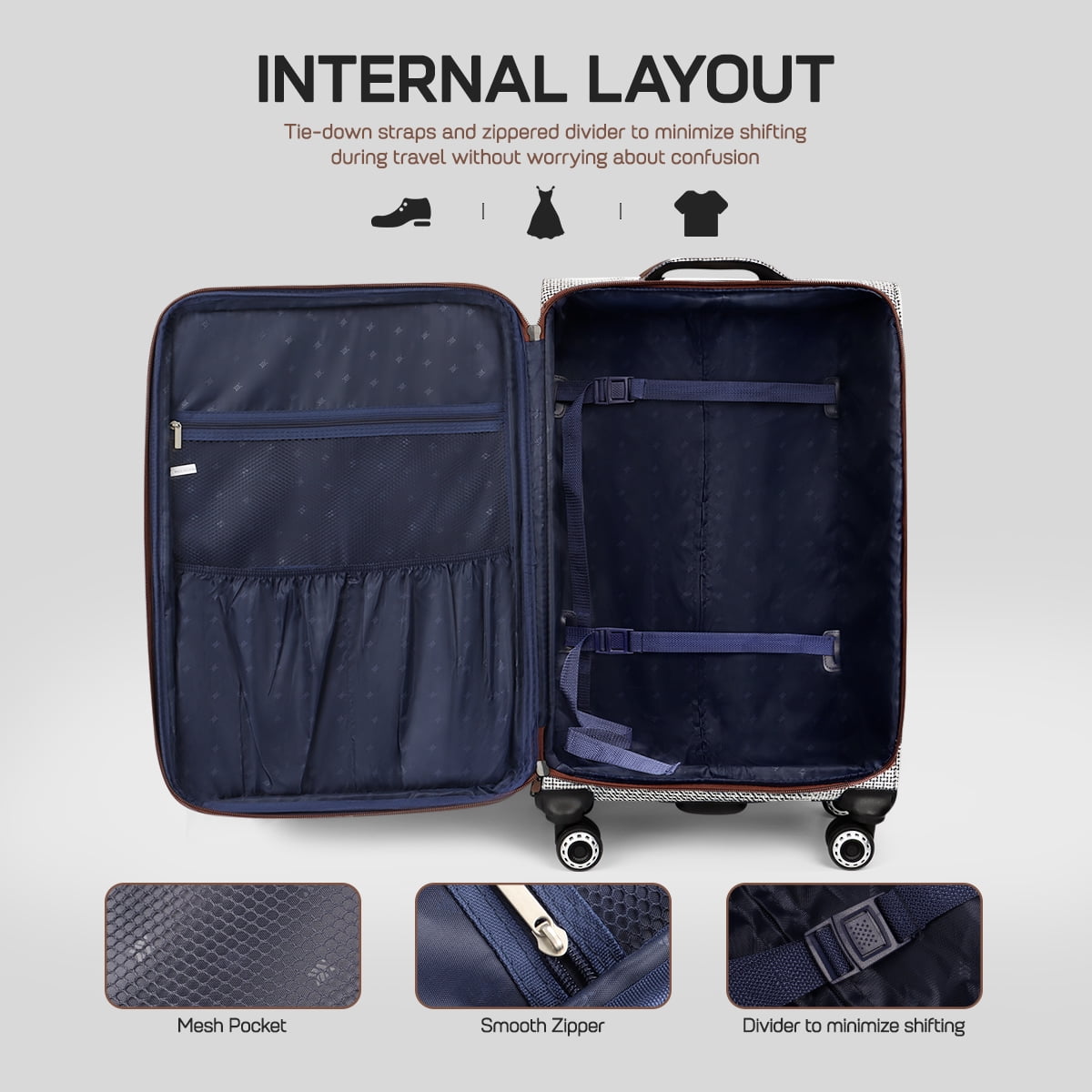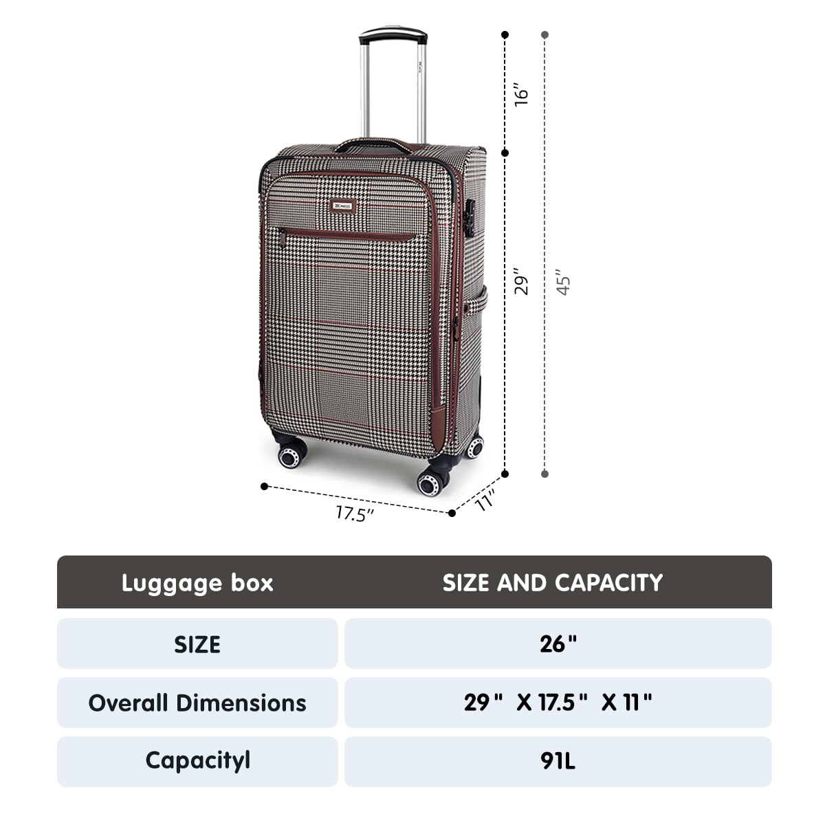 - 【Durable Material】This carry on luggage is made of durable, lightweight, and wear-resistant Oxford fabric.The classic plaid design makes it stand out.