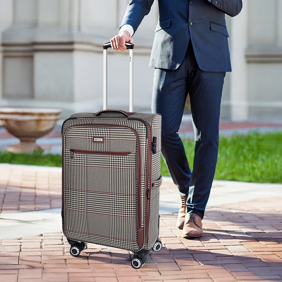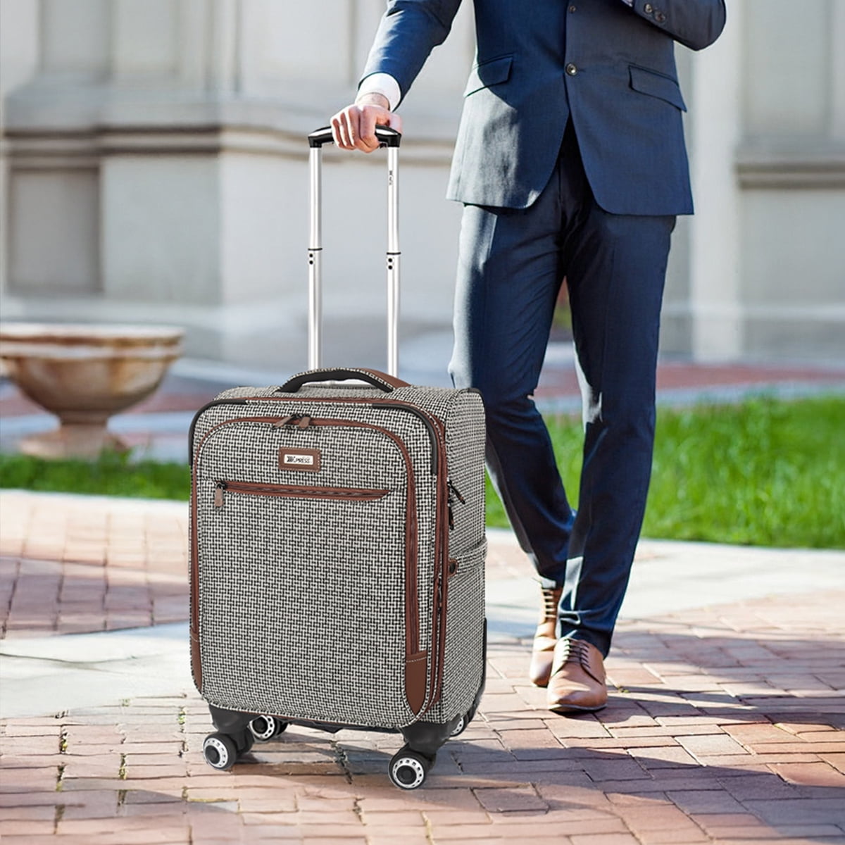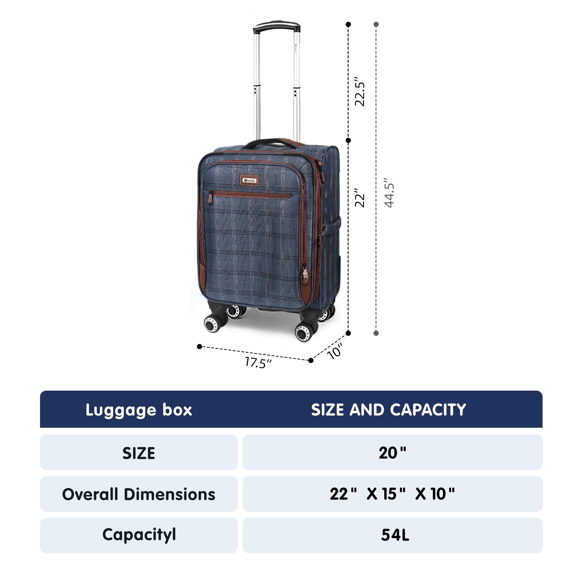 New York Xpress 20″ carry-on luggage is lightweight, ultra-durable, and softside – meeting airline-approved cabin size requirementsThis suitcase has two front pockets, a side pocket, and a spacious main compartment with adjustable straps. An expandable zipper adds extra space, while a telescoping handle, smooth spinner wheels, and multiple grab handles ensure easy mobility.The classic plaid design helps you spot your luggage at a glance, even in a sea of bags.Choose NY Xpress carry on luggage and start your journey in style!