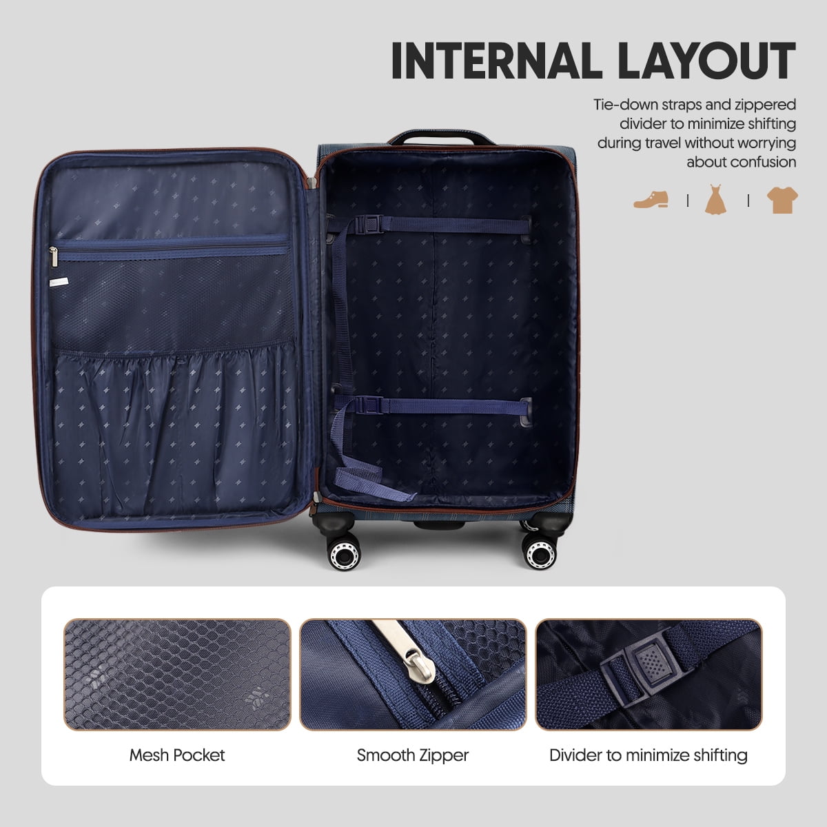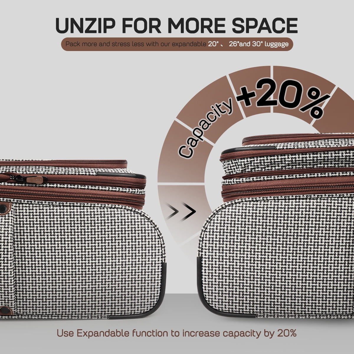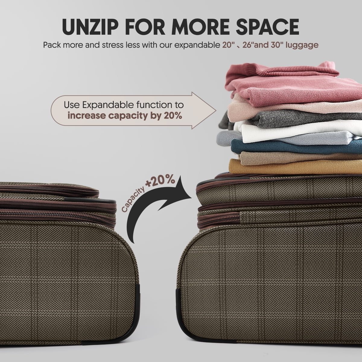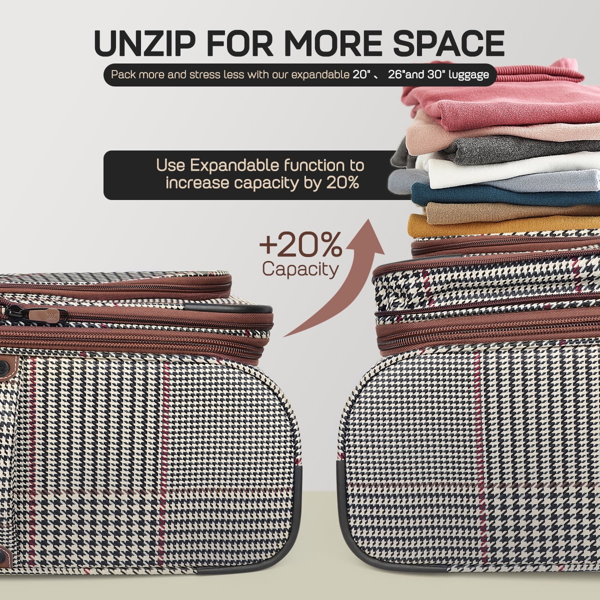 - 【Expandable Space】The spinner luggage features an expandable design, increasing capacity by up to 20% for extra storage.