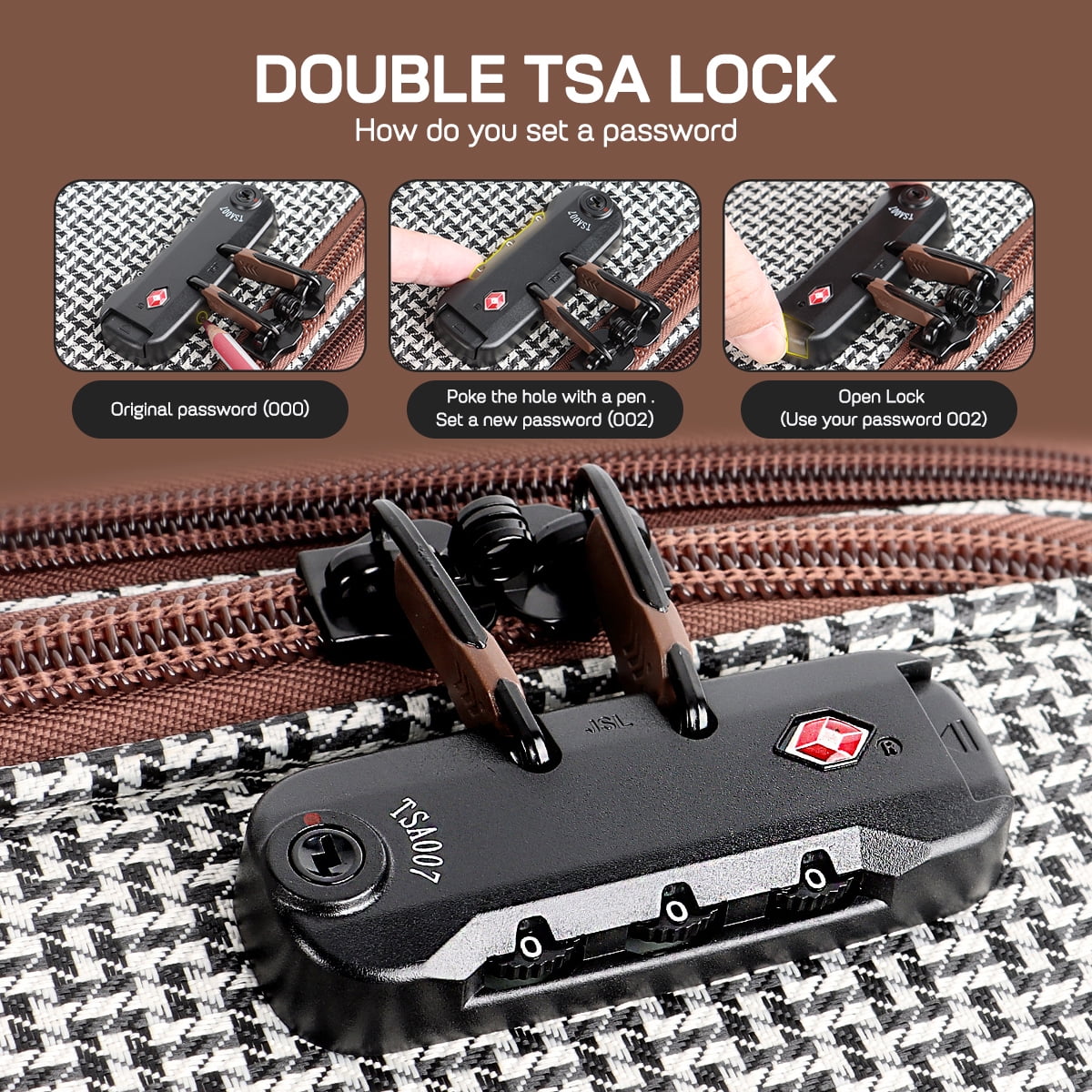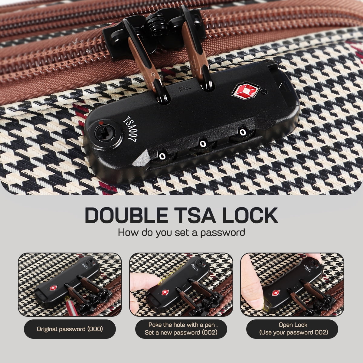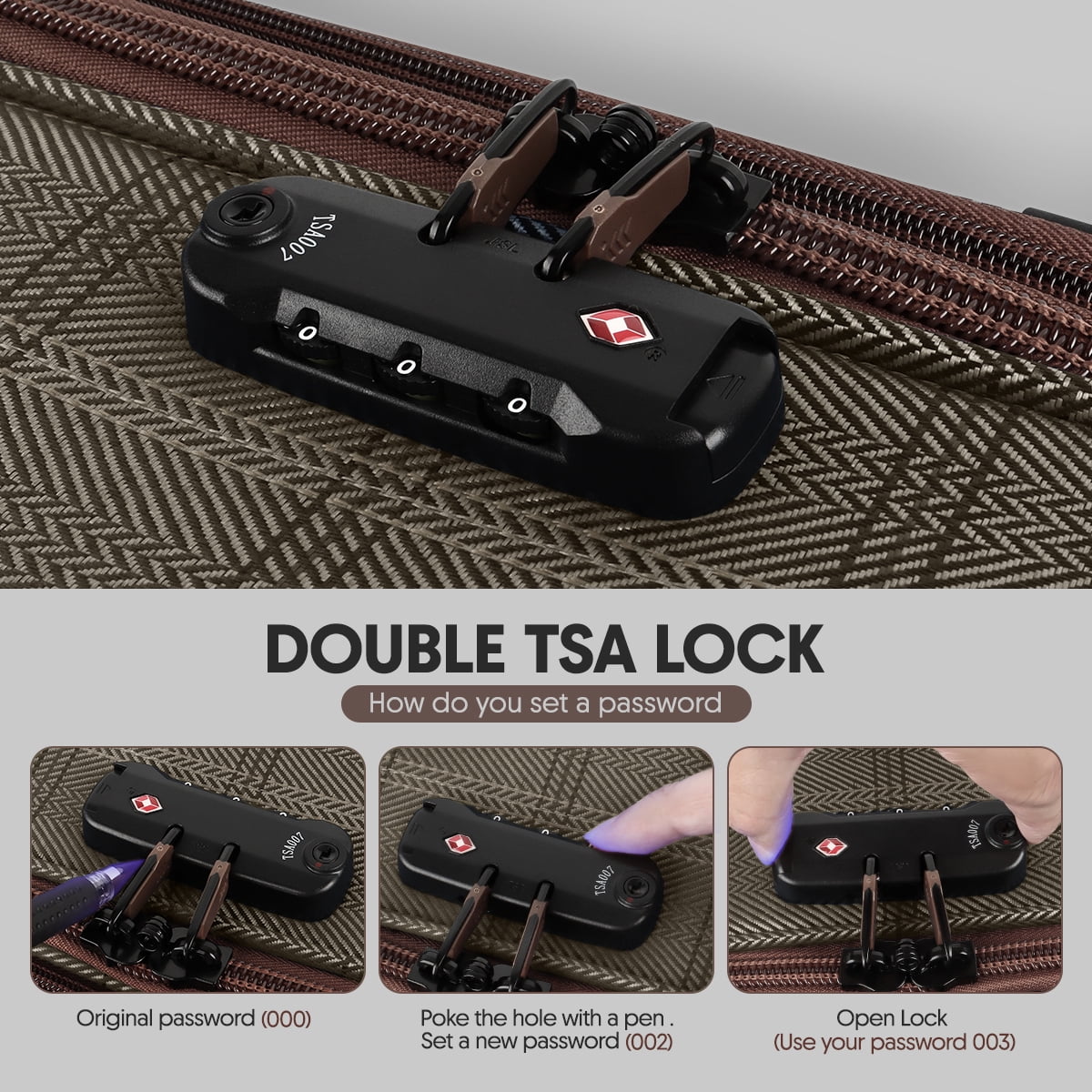 - 【Combination Lock】The side-mounted TSA lock allows only Customs to inspect your luggage for clearance.