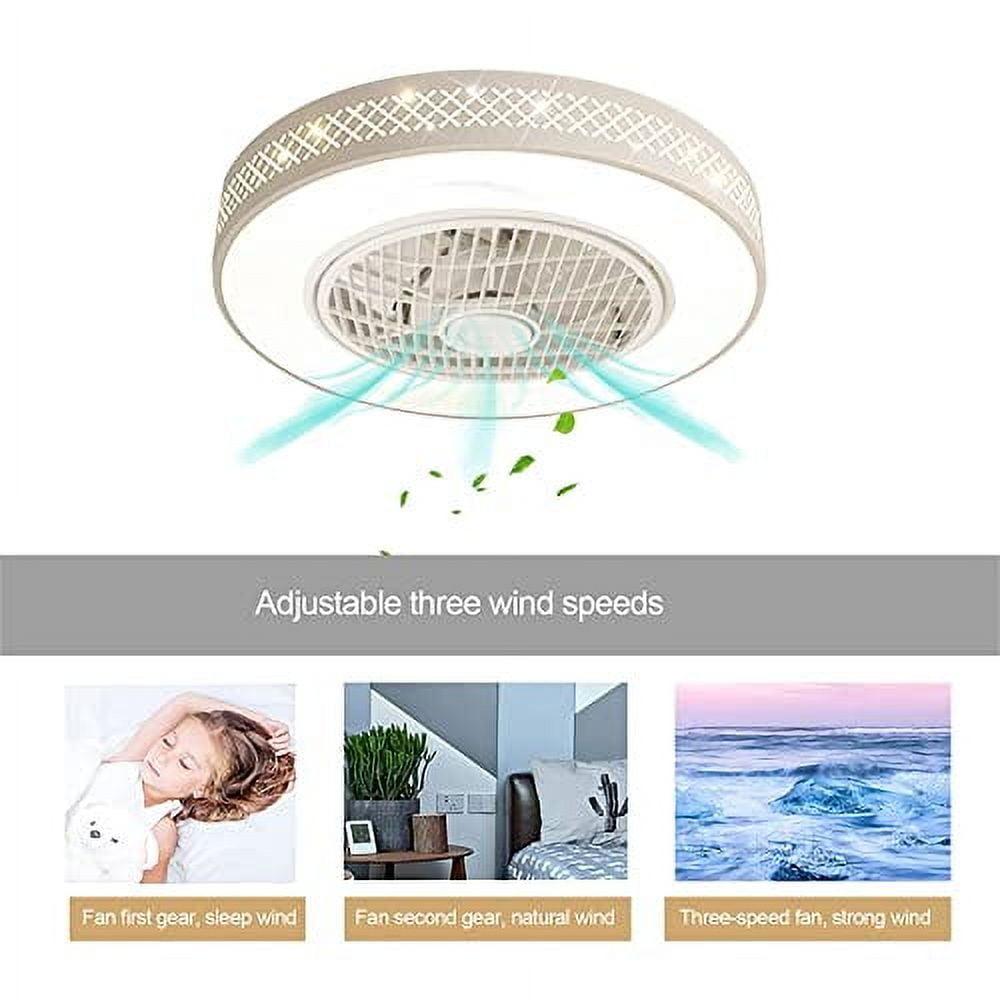 20 inches Ceiling Fan with Light - Modern Enclosed Timing Dimmable LED Low Profile Flush Mount Enclosed Ceiling Fans with Light Remote Control for Bedroom Living Room