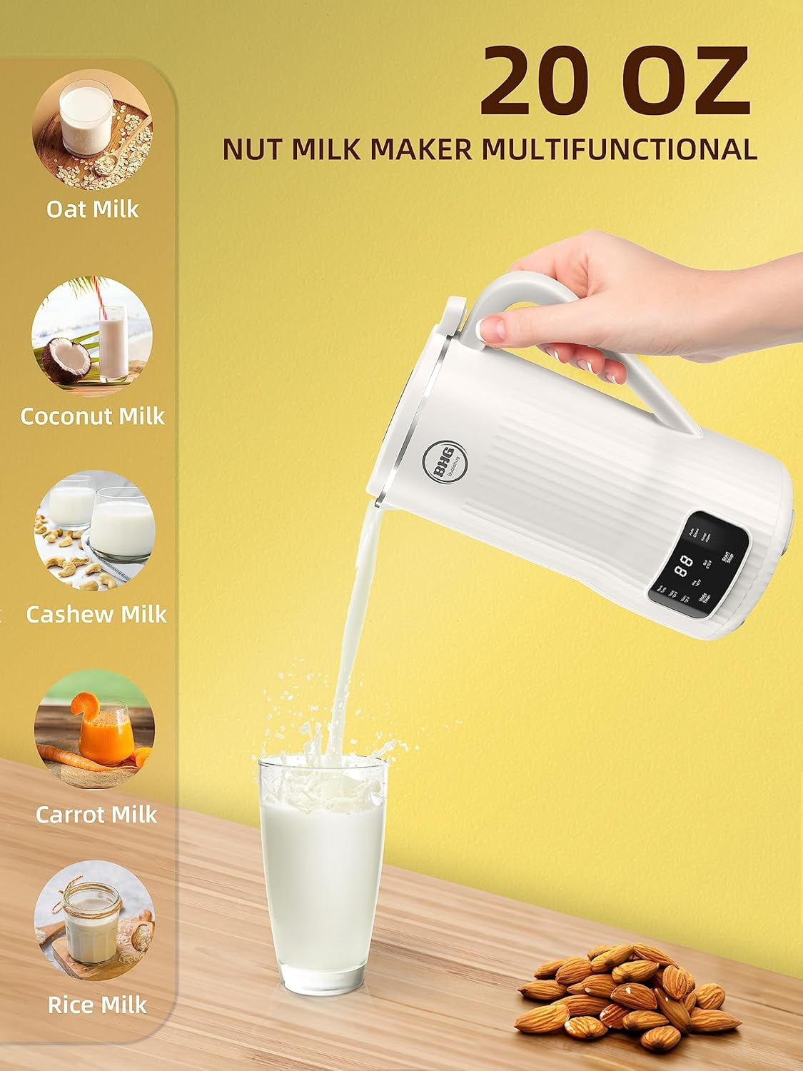 20oz Nut Milk Maker Machine – Multi-Functional Automatic Almond with 10 Blades, Plant-Based, Oat, Soy, and Dairy Free Beverages 12 Hours Timer/Auto-clean/Room Temp/Keep Warm/Boil, White