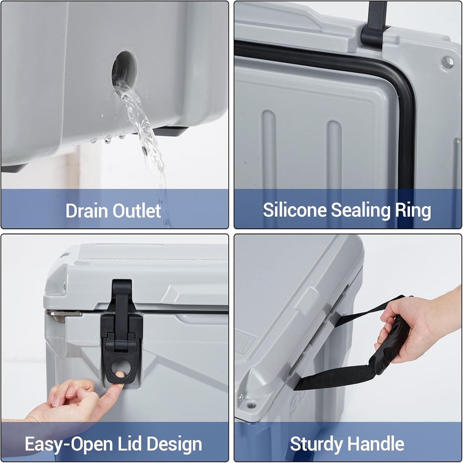 • Durable Construction: Crafted from shatter-resistant LLPDE and PU materials, our outdoor cooler is designed to withstand the test of time and rigorous conditions. This stylish and durable construction guarantees long-lasting satisfaction with every use.