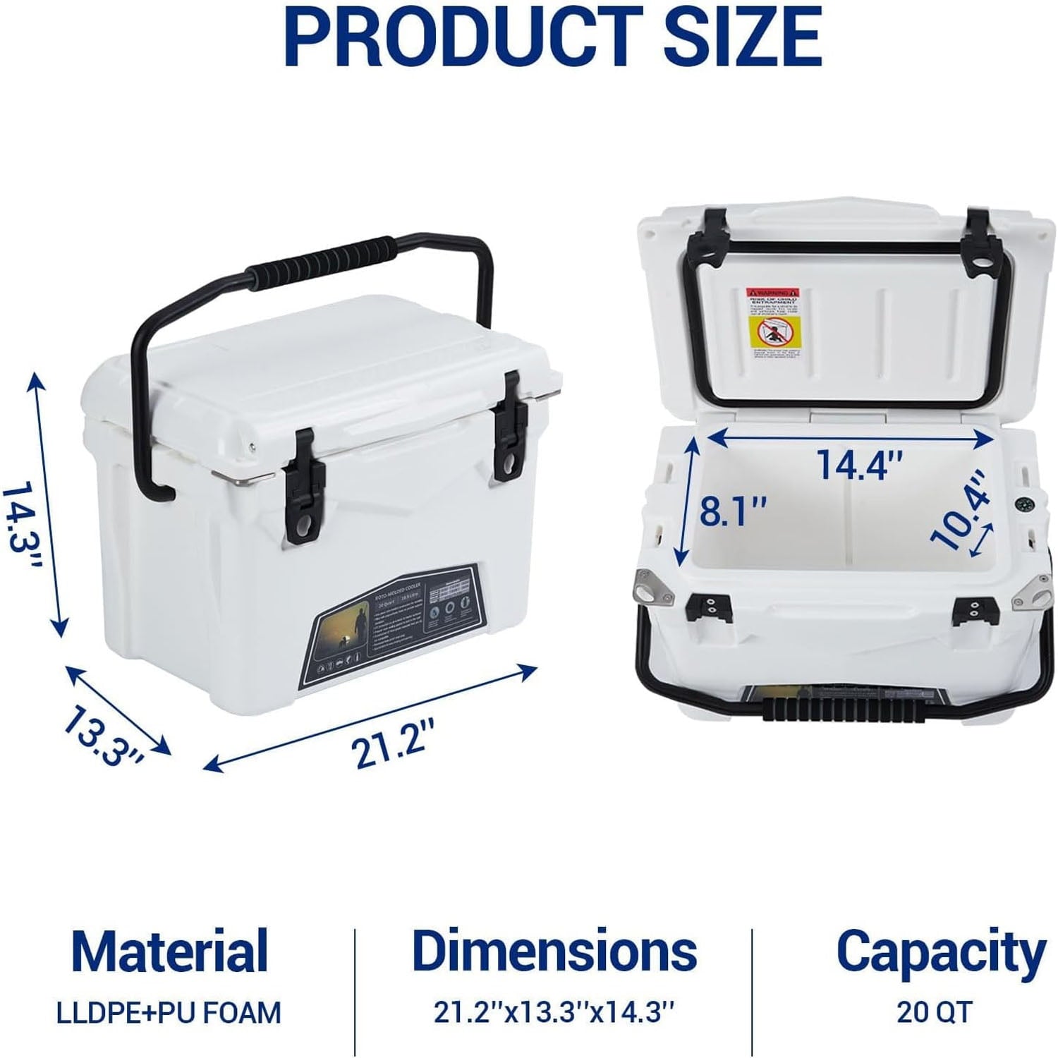 20 Quart Hard Camping Cooler, Adventure Outdoor Cooler Portable Insulated Ice Chest Cooler Box with Heavy Duty Handle, 5-Day Ice Retention, Great Camping Cooler with Easy Carry Top Handle Cooling Ice