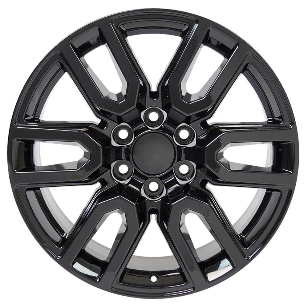This CV36 replica wheel is a 20×9 black rim designed to fit the Chevy Silverado and GMC Sierra 1500 and other compatible vehicles. Please check our fitment tab for specific year-make-model applications and will-not-fit exceptions before ordering.Fits: Chevrolet Silverado 1500 1999-2021, GMC Savana 1500 2003-2014, Chevrolet Avalanche 1500 2002-2013, GMC Sierra 1500 1999-2021, Chevrolet Tahoe 1995-2021, Chevrolet Blazer 1992-1994, Chevrolet Suburban 1500 1988-2021, GMC Yukon 1992-2021, Cadillac Escalade 1999-2021, Chevrolet Express 1500 2003-2014, Chevrolet C2500 1988-2000. Fitment guaranteed for stock equipped vehicles only.