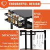 【Easily Movable】The outdoor grill table comes with four 360°freely rotating wheels that make it easy to move the barbecue cart to where it’s needed, and each wheel comes with brakes that make it easy to stop, even on slopes!