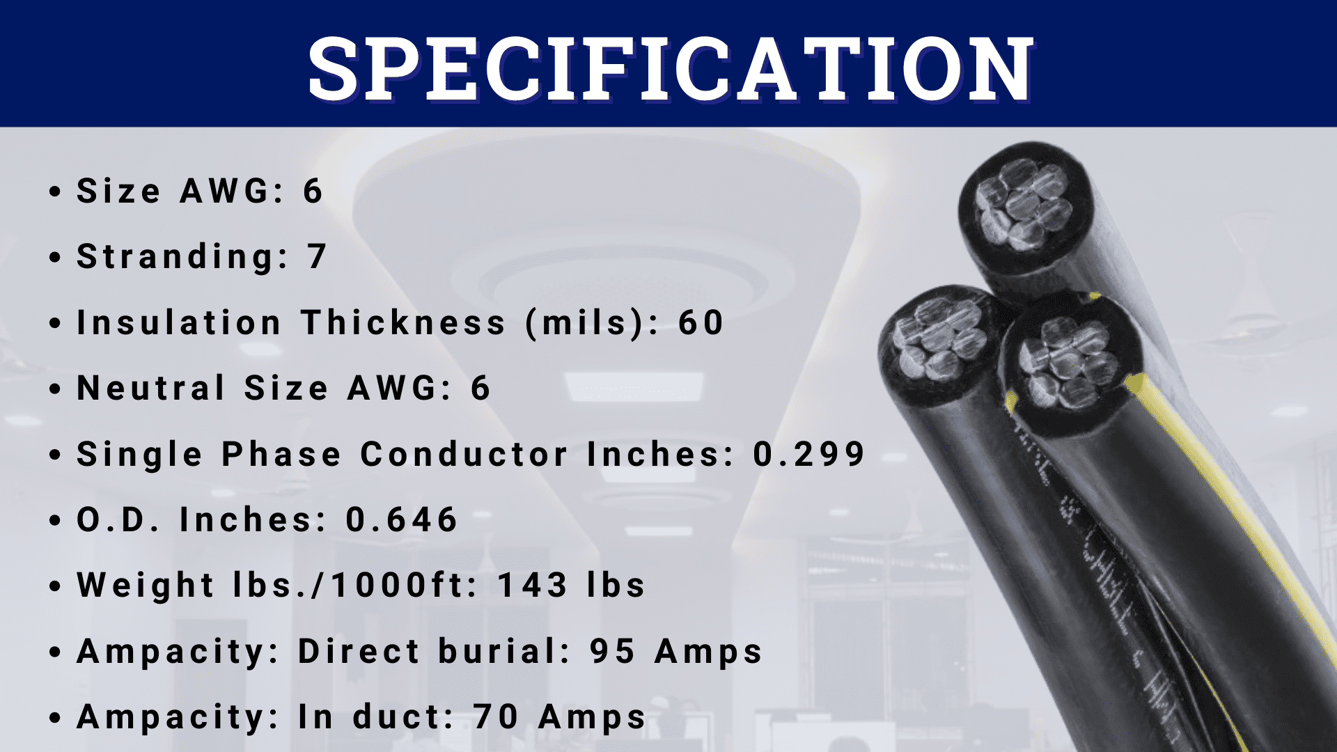 • Ampacity: Direct burial: 95 Amps