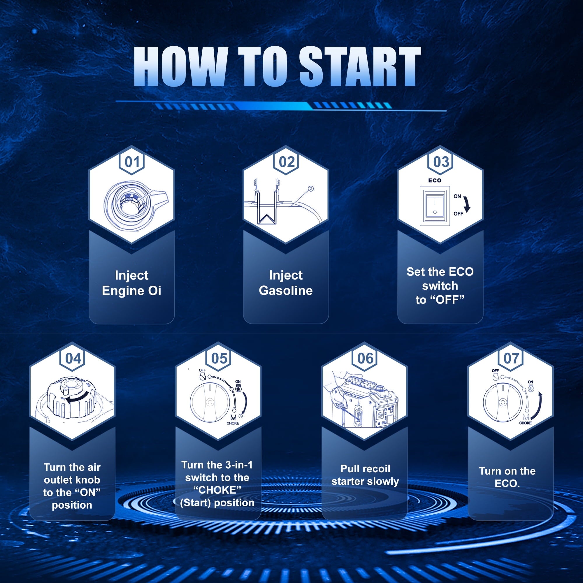 🌞 For Beginners: Please complete 30 minutes of no-load break-in before first use. It is recommended to add 92# or above unleaded gasoline to enhance combustion efficiency by 15%.