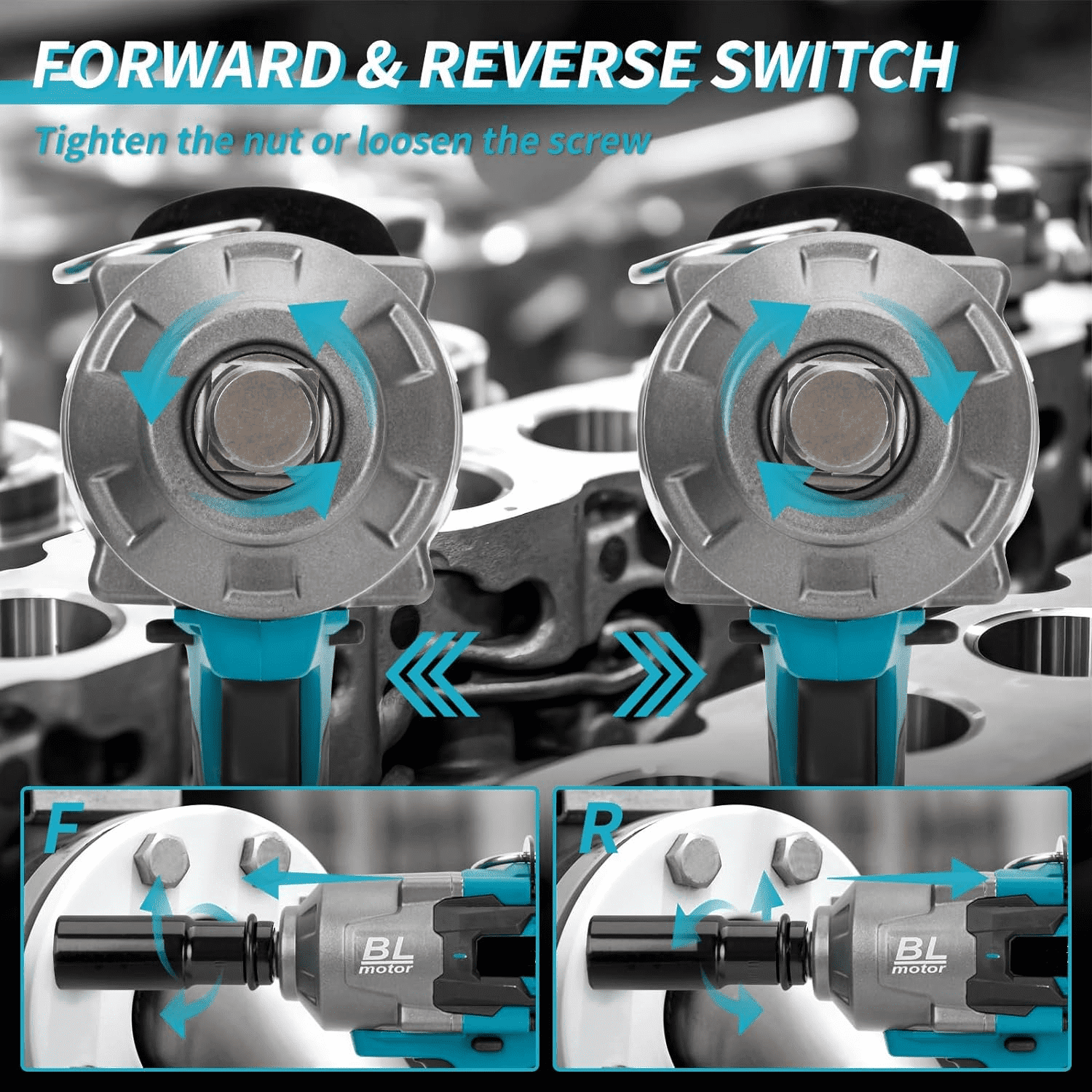 - 🛠️ TWO WAY BRAKE – Heavy duty impact wrenches are available in forward and reverse modes to meet your specific needs, in reverse mode, as soon as a nut or bolt loosens, the brake stopper kicks in and reduces the speed and torque, so you can say goodbye to flying bolts. Safety always comes first!