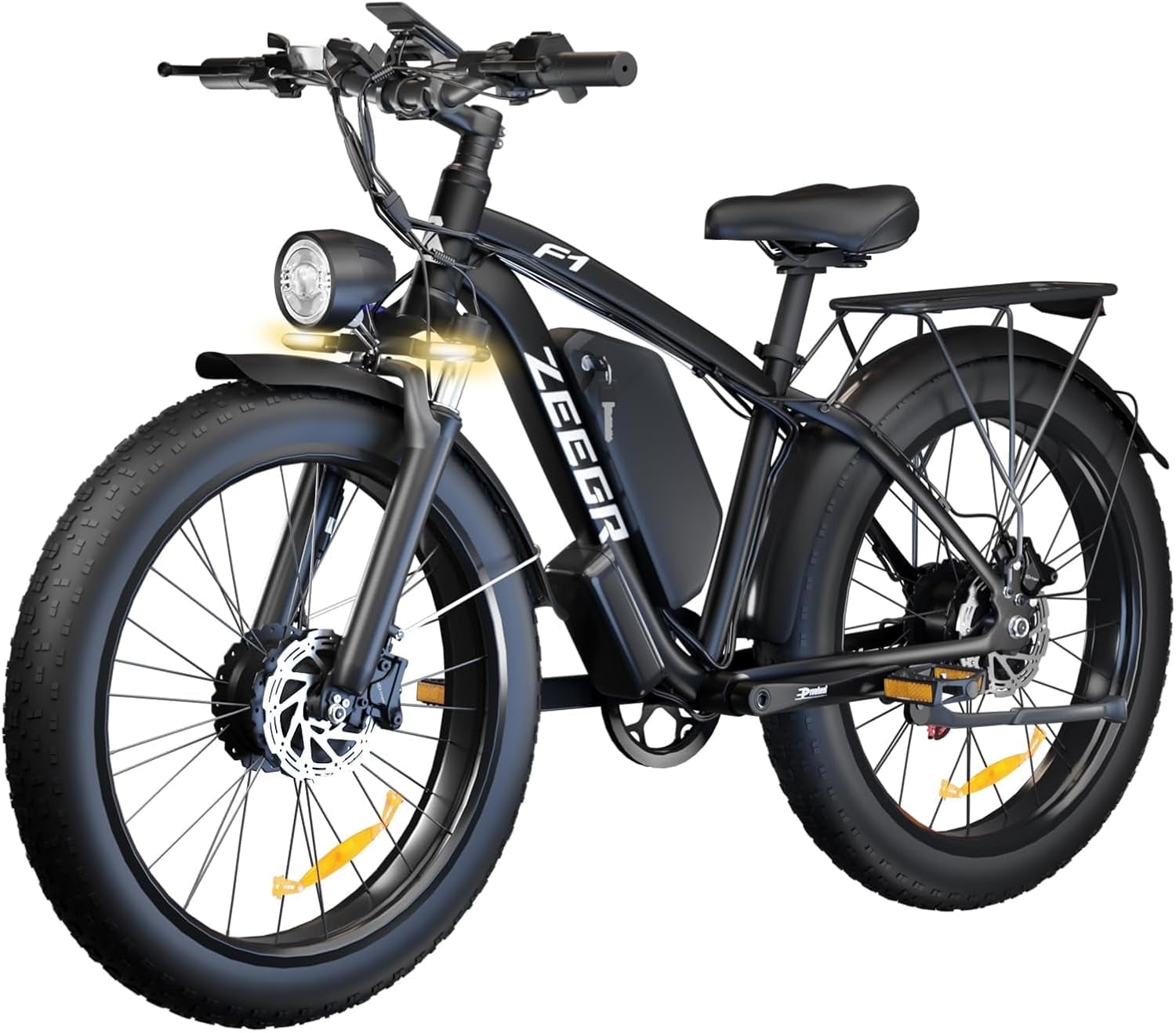 • 2000W Electric Bike: Two Motor 2000W high speed brushless motor, providing electric bikes strong power and climbing capabilities, assists the speed up to 35MPH. With 7-Speed Gear, which offers more accurate and smoother gear shifting capability.Big Capacity Lithium Battery Ebike: Large capacity 48V 22.4Ah battery offers ebikes long riding range of 40-60 miles in pedal assist mode. Battery lock and about 5-8 hours fast charge.Ebike for adults: Armed with front and rear hydraulic disc brakes, this electric moped offers u an easy brake within 2 seconds, safe and professional. The high-quality lockable suspension fork has a good shock absorption effect,helps u feel less fatigue and enjoy smoother riding no matter what terrain it isFat Tire Electric Bike: The 26” *4.0” fat tire with tread patterns has a wider contact area which enhances flexibility, excellent grip, wear resistance and anti-skid function to let you safer in rainy day.This e-bike comes 85% pre-assembled. Some simple parts are left for you to enjoy hands-on fun