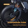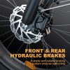 • Ebike for adults: Armed with front and rear hydraulic disc brakes, this electric moped offers u an easy brake within 2 seconds, safe and professional. The high-quality lockable suspension fork has a good shock absorption effect,helps u feel less fatigue and enjoy smoother riding no matter what terrain it is