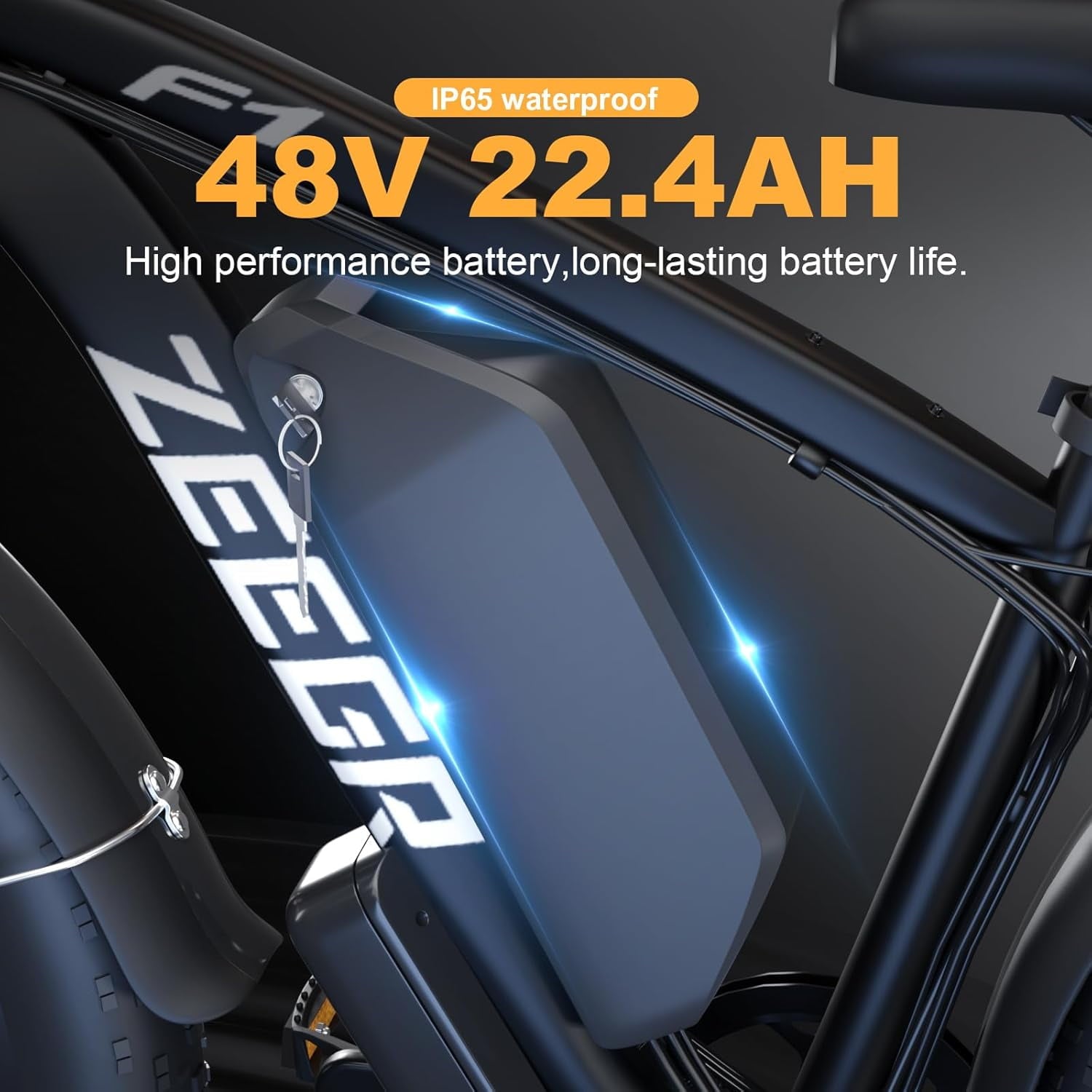 • Big Capacity Lithium Battery Ebike: Large capacity 48V 22.4Ah battery offers ebikes long riding range of 40-60 miles in pedal assist mode. Battery lock and about 5-8 hours fast charge.