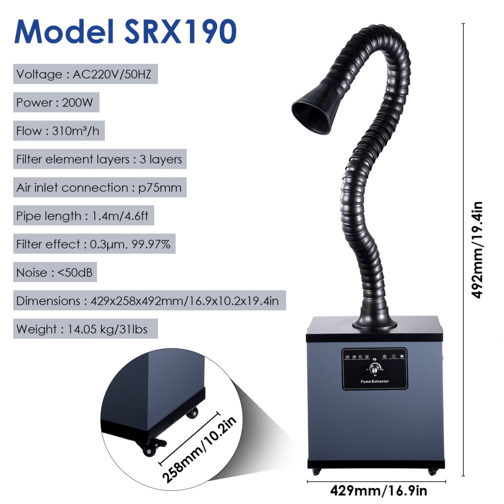 Home Fume Extractors 200W Low-Noise Welding Fume Extractor, 310m³/h Suction
