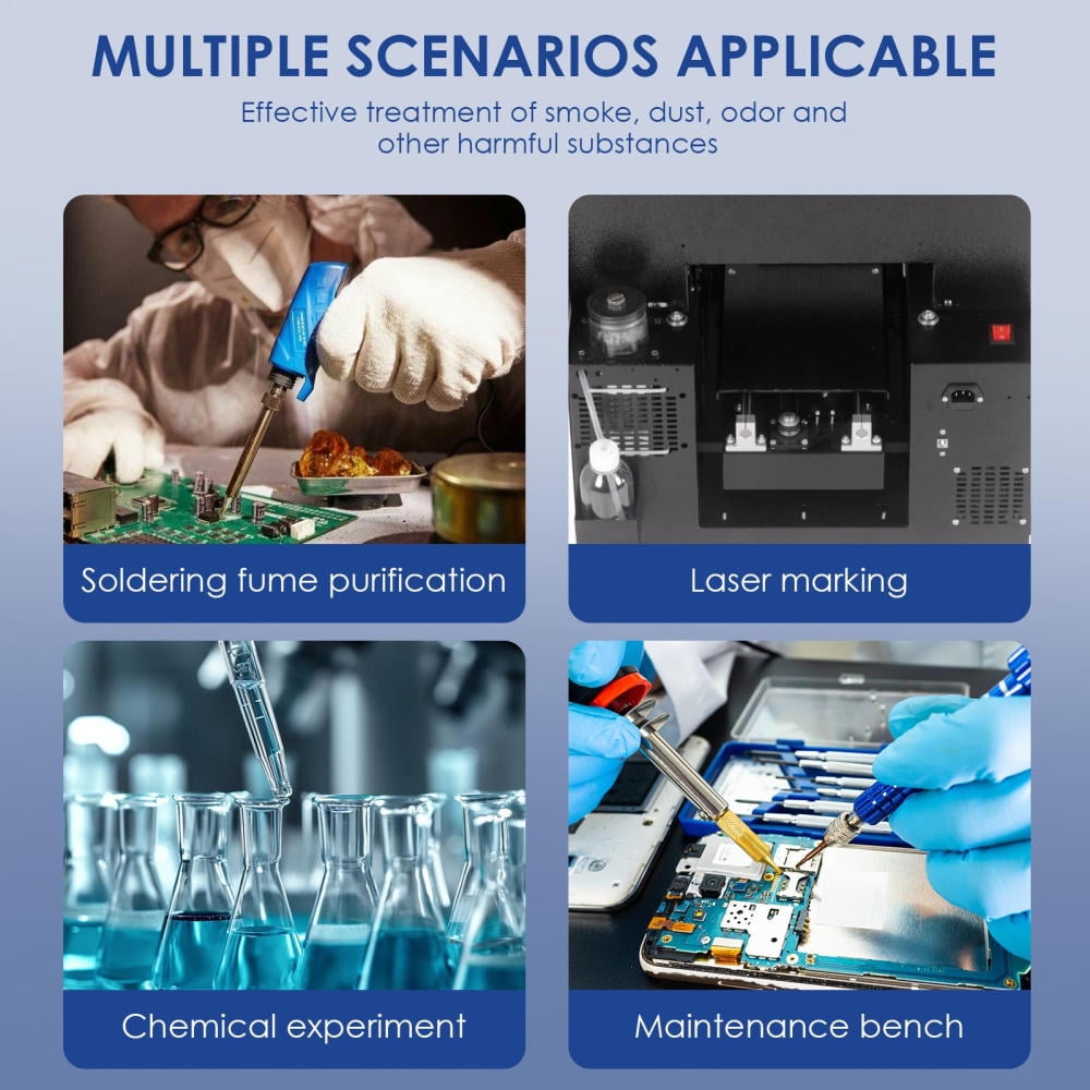 • Efficient Air Filtration: Maintain a healthy and peaceful environment with this efficient solder fume extractor that operates quietly, purifying the air with advanced filtration technology, and keeping the noise rate under 50dB for a quiet work experience