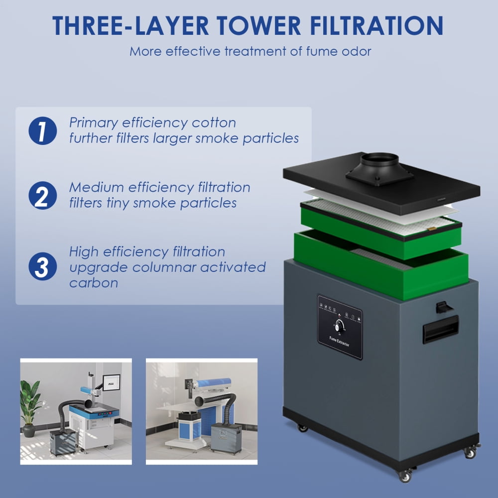 • Ideal Fume Elimination: The powerful 3-Layer Filtration system of our solder fume extractor, including a pre-filter, extended filter, and activated carbon, quickly and efficiently removes fumes and particles, ensuring a safer and healthier work environment