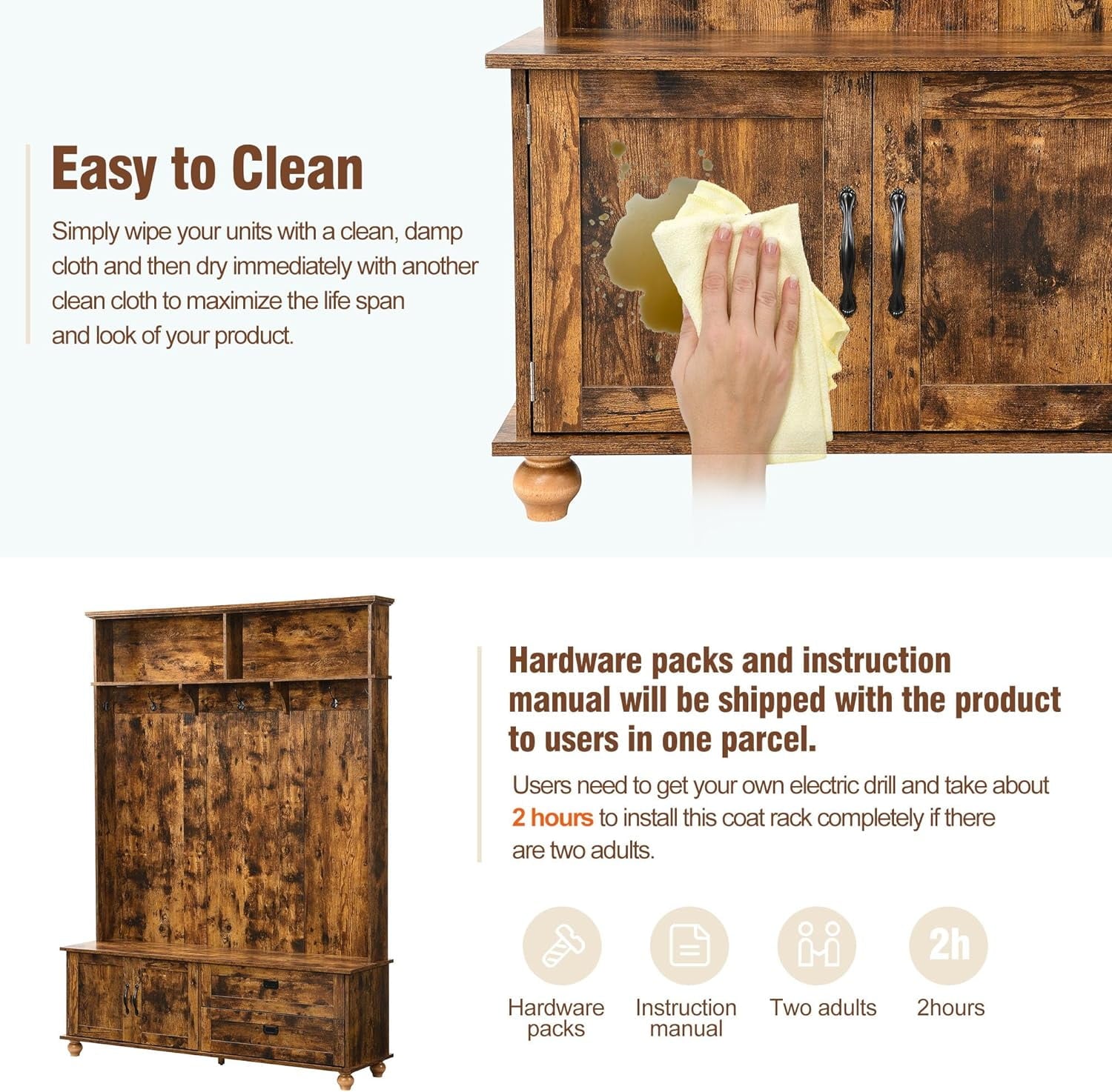 - 【With Cabinet and Drawers】The bottom of this hall tree is juxtaposed with a cabinet and 2 drawers to accommodate all kinds of items. And the wide bench is a wonderful place to sit and change shoes.
