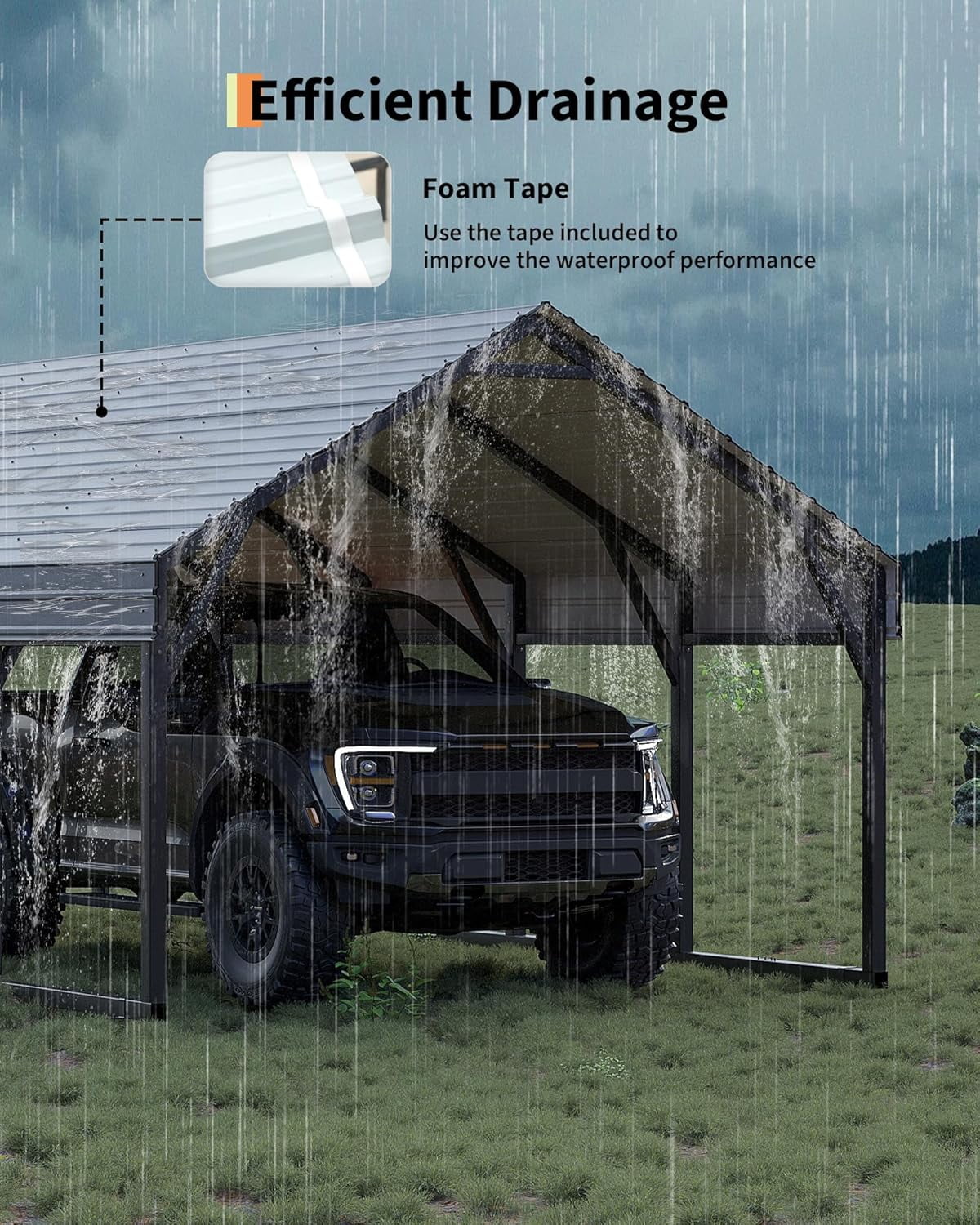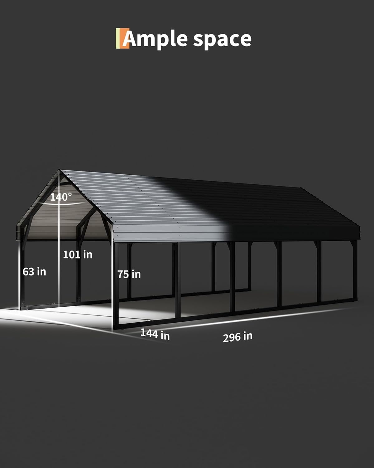 - 【All Metal Carport More Durable】Our Carports features 19 gauge high-strength steel poles and 27 gauge steel roof; All components coated with triple rust-resistant to increase product life