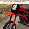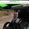 - 【All-Terrain Readiness】 Professional-grade hydraulic suspension absorbs impacts better than standard electric bikes. 3″ deep-tread tires + steel spring forks conquer mud, grass & gravel quietly. Smoother than gas-powered dirt bikes for kids – no fumes or loud engine noises.