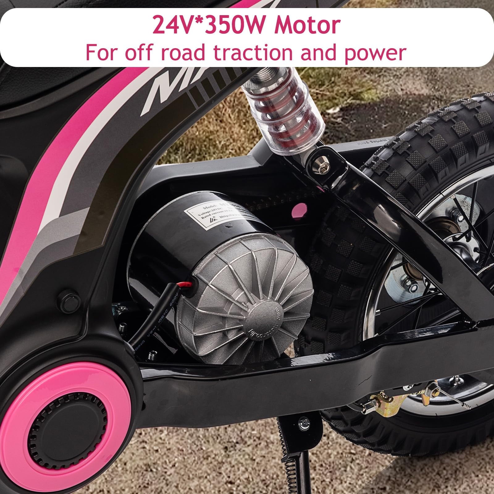 Unleash the thrill of adventure with this 24V Electric Dirt Bike for Kids, expertly designed for ages 8-14. Powered by a 350W high-torque motor and a durable 24V battery, this kids’ electric dirt bike is the final gift for young riders, ready to handle up to 135 lbs and deliver endless fun across various terrains.