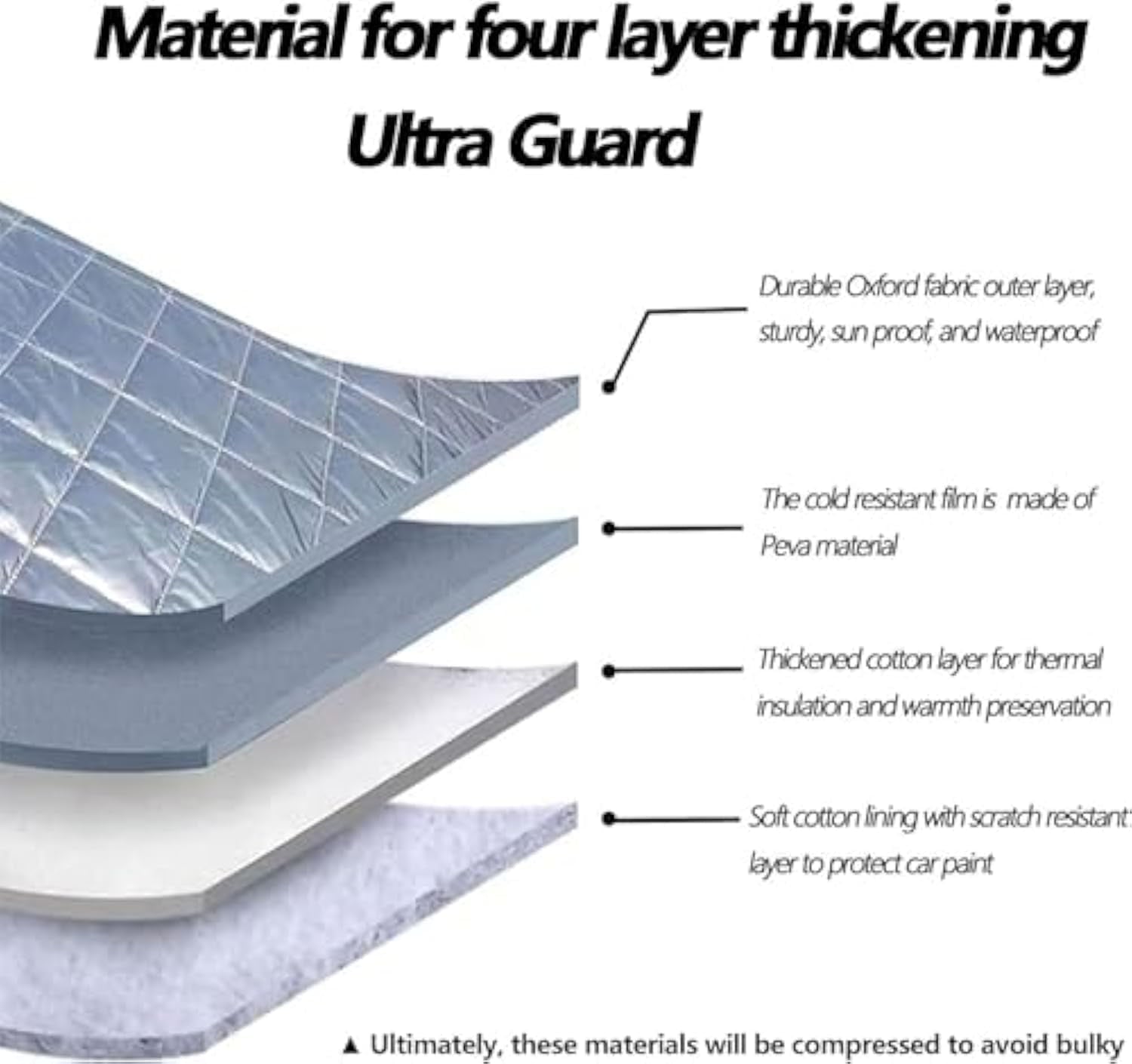 - 【Ultimate Hail Protection & Multi-Layer Defense】: The Hail Protector Car Cover features a 4-layer padded design with a reflective silver outer layer for UV protection and a thick cotton interior that cushions against hail impact. It protects against hail up to 50mm while shielding from snow, ice, rain, and sun damage【Windproof Stability for Harsh Weather】: Equipped with windproof buckles, elastic straps, and dual mounting side flaps, this Hail Protector Car Cover SUV stays secure even in strong winds. Say goodbye to scraping ice in the morning with a snug, stable fit designed to withstand extreme conditions【Enhanced Night Visibility & Safety】: This car hail cover protector is designed with reflective strips on the rearview mirrors and front of the vehicle, increasing nighttime visibility. Locate your vehicle easily while reducing collision risks, ensuring safety and convenience in low-light environments【Universal Fit for Cars, SUVs & Trucks】: Designed to fit sedans, hatchbacks, SUVs, and trucks, the vehicle hail blanket provides full-coverage protection. Its adjustable elastic hem ensures a secure fit, while quick installation makes it easy to use, store, and carry for everyday convenience【All-Weather Protection & Waterproof Durability】: The car cover hail protection padded features waterproof, UV-resistant materials with a reinforced structure that withstands long-term exposure to rain, snow, and debris. This car hail cover protector padded offers reliable, year-round defense, keeping your vehicle in pristine condition