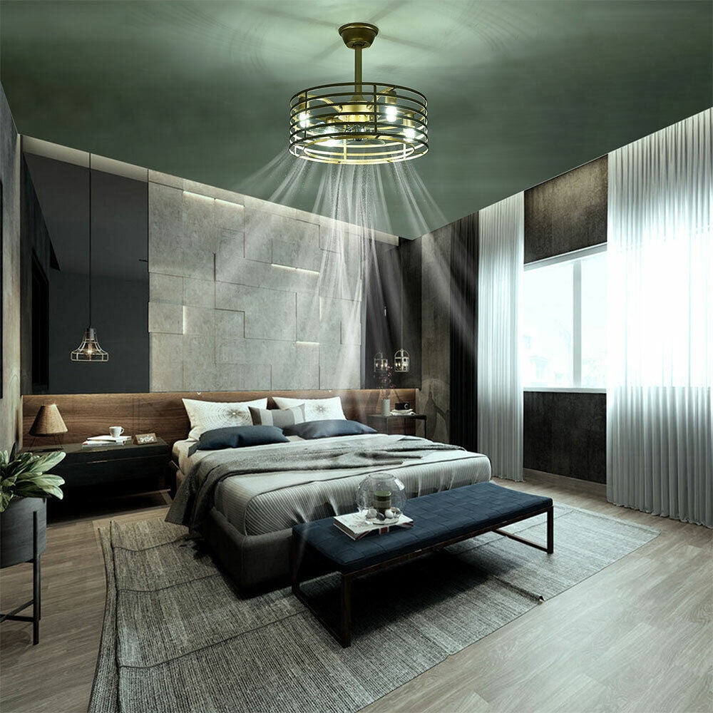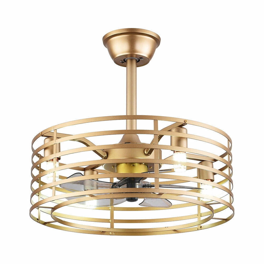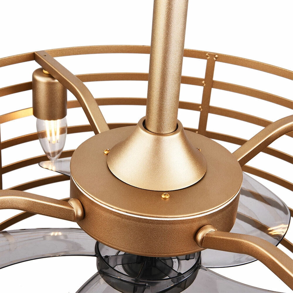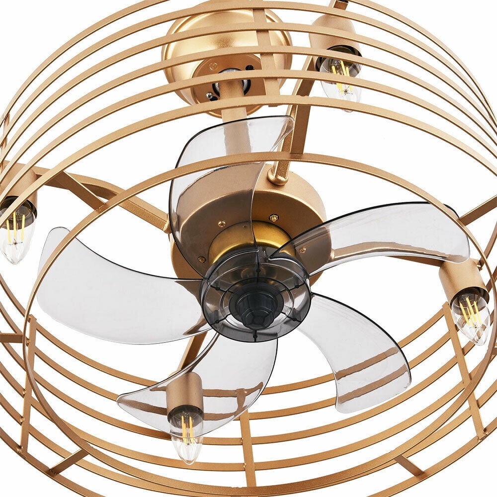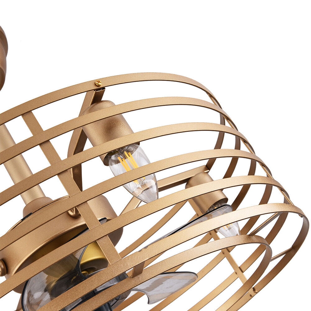 20in Retro Golden Caged Bladeless Ceiling Fan Light with Remote Control 40W