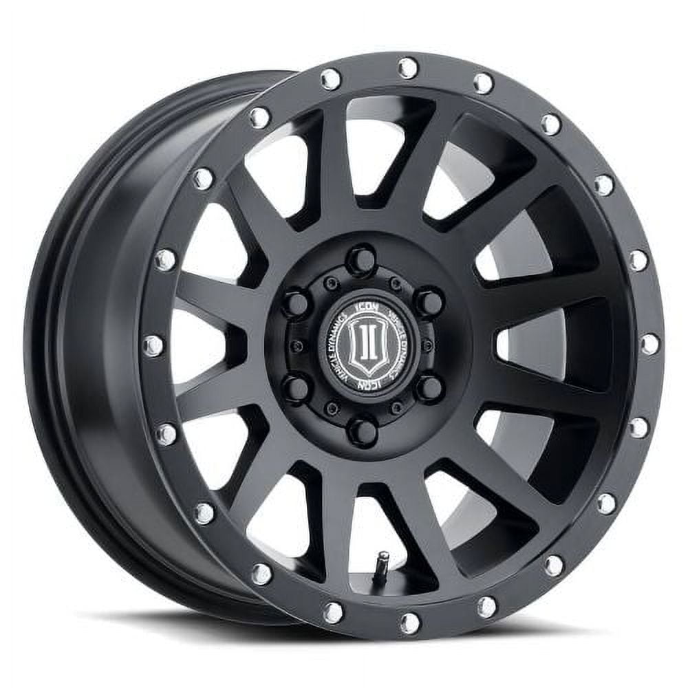 ICON ALLOYS COMPRESSION SAT BLK – 20 X 10 / 6 x 5.5 / -19MM / 4.75″BS. ICON ALLOYS COMPRESSION SATIN BLACK – 20 X 10 / 6 X 5.5 BOLT PATTERN / -19MM OFFSET / 4.75″ BACKSPACE. The 20×10 Compression is now offered in several new bolt patterns with unique backspace/offset dimensions to provide an aggressive style and stance for more style-focused customers. These wheels also yield a 2,750-lb load rating retaining the traditional utility and strength of ICON Alloys. Combining sharp lines, a concave spoke design, and style-oriented dimensions, these wheels will increase both the form and function of your vehicle. Available in Bronze, Satin Black, and Titanium finishes with color-matched rock ring bolts, the Compression has a classic style with the strength to match.20×10 Icon Alloys Compression Satin Black Wheel 6×5.5 (-19mm)