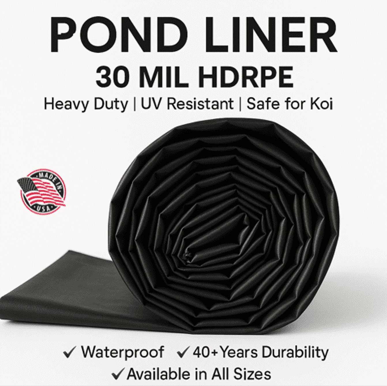 This Sale is for a brand new custom cut pond liner size 20×150 (150 feet by 20 feet, 20×150) in a Rectangular shape piece containing 3000 square feet of HDRPE (High Density Reinforce Polyethylene) 30 Mils, 40 Years, per square inch resistance, UV Protected, Fish Safe,NSF Certified for drinking water and very user friendly. It does not require underlay in most uses. AmericanTilapia is your best source of quality aquaculture equipment, fish, pond liners, geomembranes and geofibers for all environmental, industrial. In the past two decades, the use of geomembranes and geofibers has increased rapidly. Today with new EPA regulations, the need for stronger, lasting ecofriendly material, our fibers have become part of 1000’s of new industries. This growing needs for better, safer, friendlier and longer lasting products allow us to offer you a diverse inv.