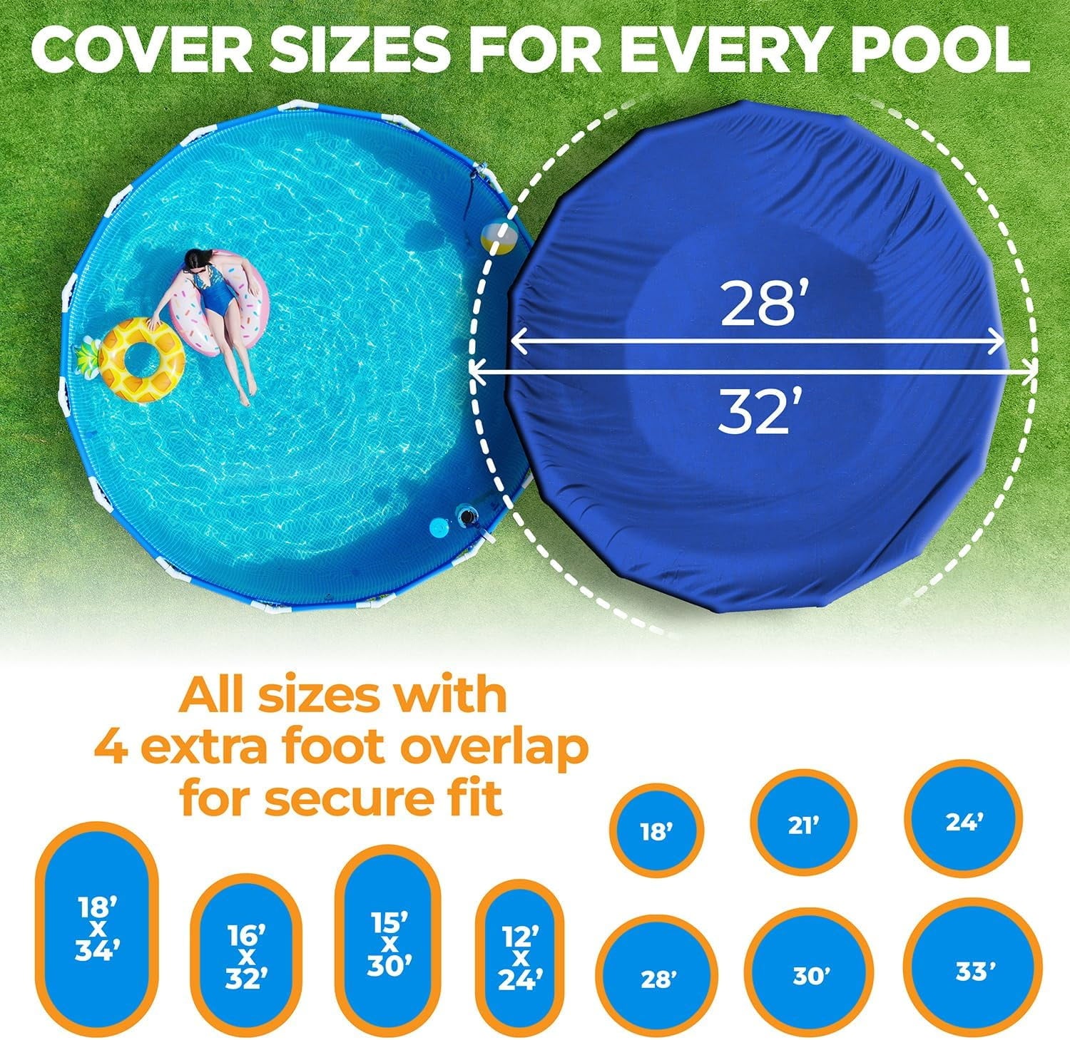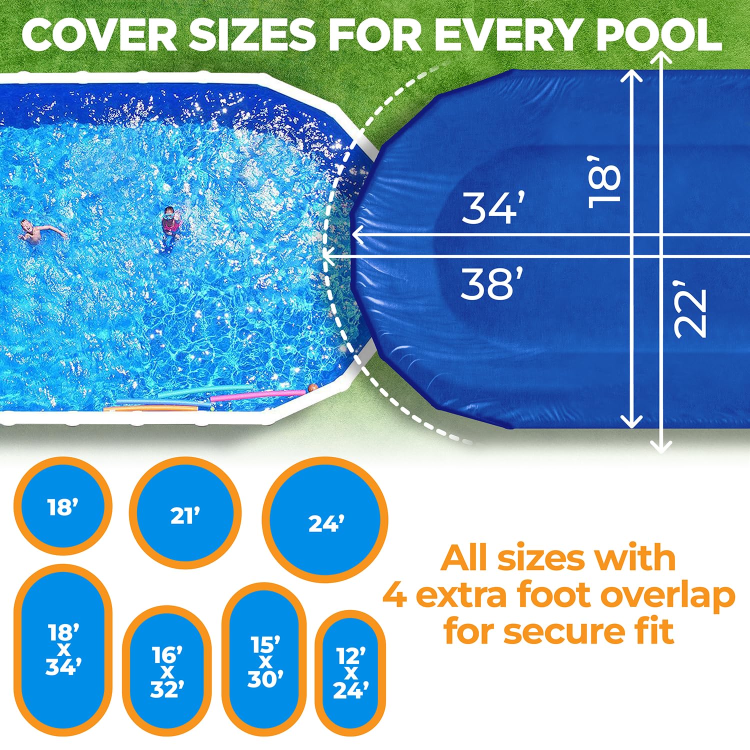 • Generous Overlap: The 4-foot overlap offers complete coverage, providing extra protection for your above-ground pool.
