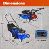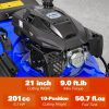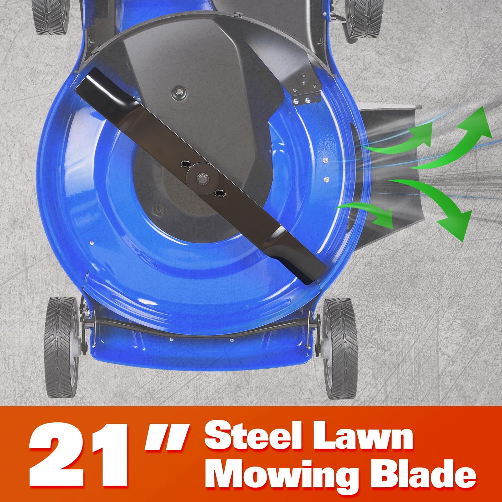 This powerful 21-inch gas lawn mower from Anlibatt is equipped with a robust 201cc 4-stroke OHV engine that delivers 9.0 ft-lb of torque for efficient and consistent cutting performance. The versatile 3-in-1 mowing deck allows for mulching, side discharge, and rear bagging, while the single-lever height adjustment provides customizable cutting heights from 1.2 to 3.75 inches. Featuring double ball-bearing wheels and a comfortable foam-wrapped grip, this mower is easy to maneuver and operate, with a no-choke, no-primer, single-pull start design for convenient use. Backed by a 90-day warranty, this gas-powered lawn mower is an ideal choice for maintaining medium to large-sized lawns, yards, and gardens.