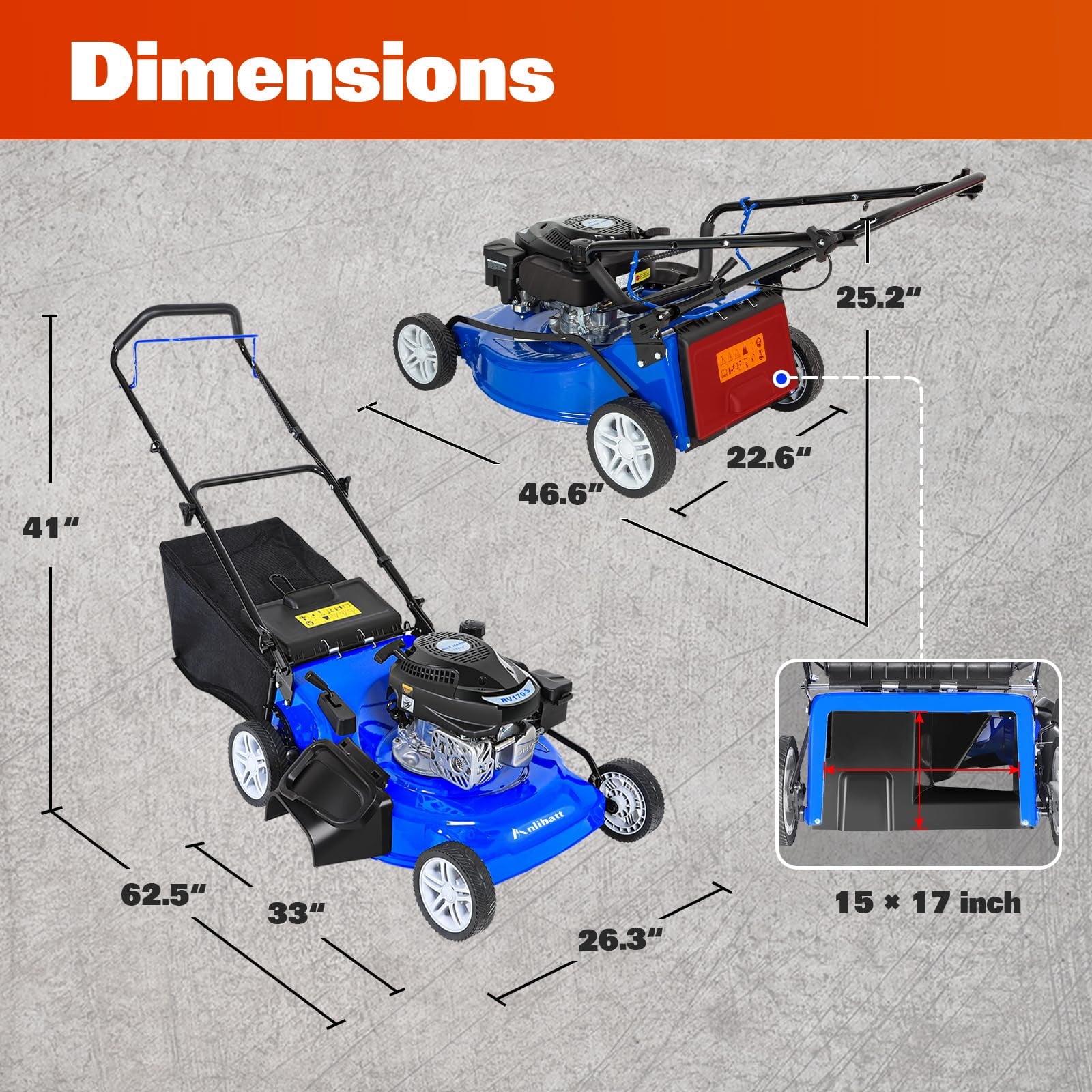 Home Walk-Behind Mowers Anlibatt 21 Inch Gas Lawn Mower, Gasonline Lawnmower Walk-Behind Push Mowers With Bagging 201cc 5.7HP 4-Cycle OHV Engine, Adjustable Cutting Height Gas Powered Lawnmower
