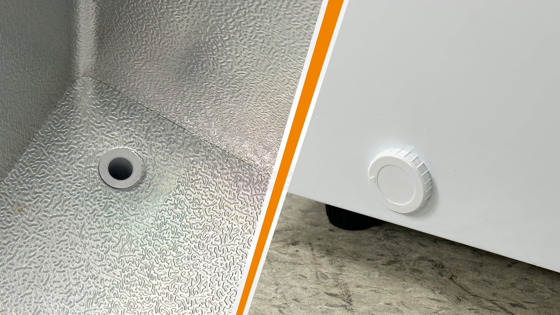- Exterior durable white Powder coated Steel Interior embossed aluminum