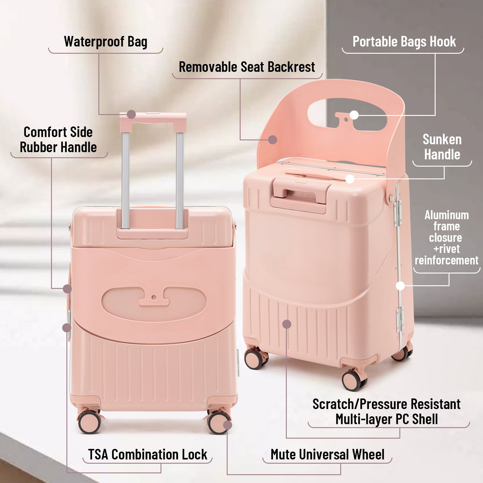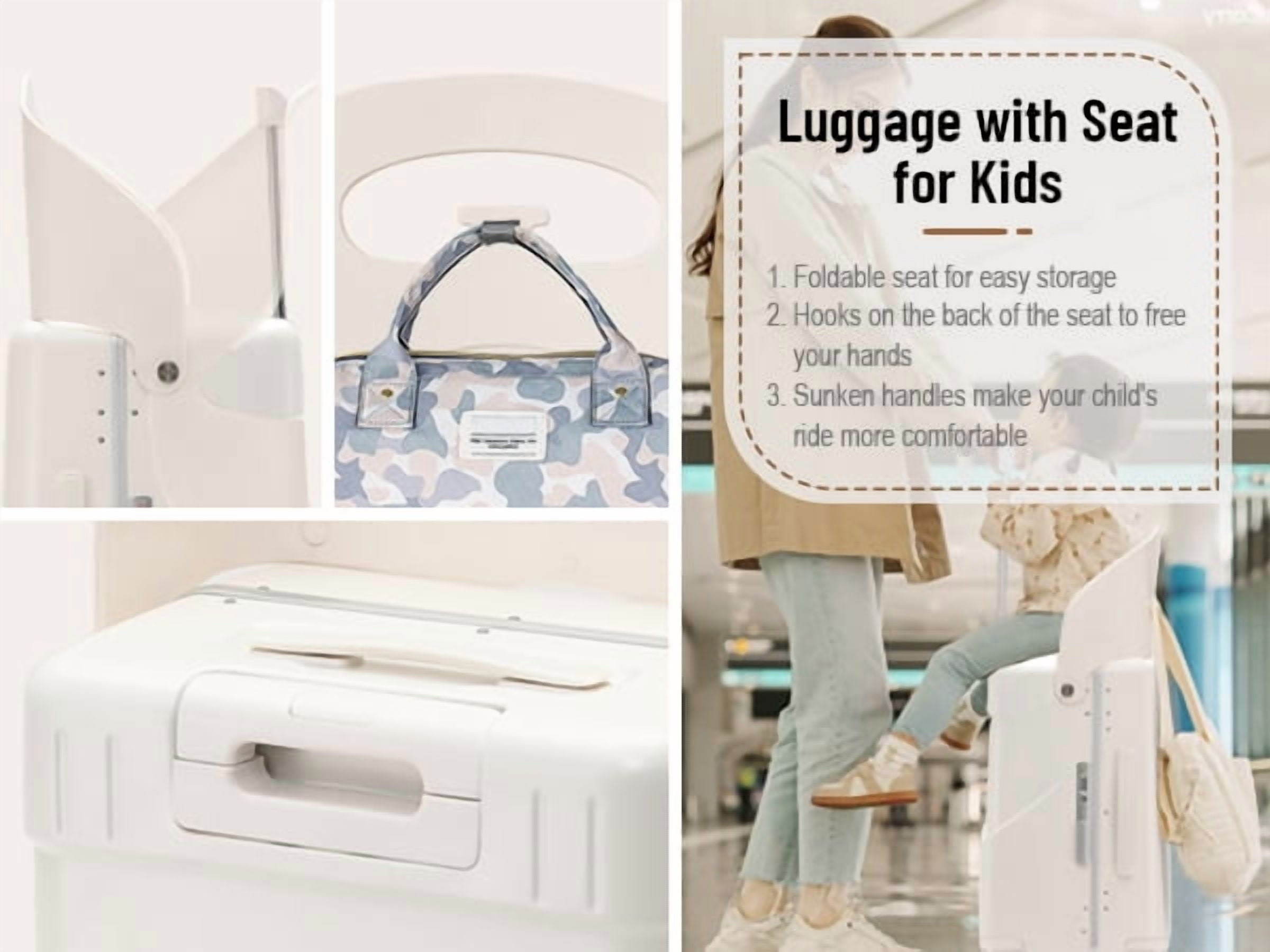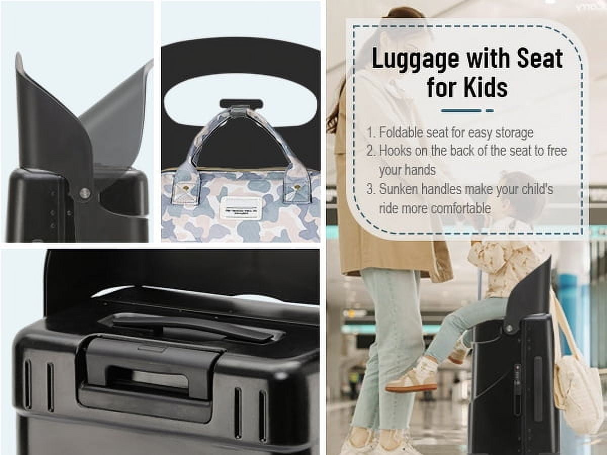 - 【Convenience and Portability】: Here is the warm reminder,the 22 inch Luggage need to be checked in at the airport.If you have a need to bring it on a plane, please buy our 20 inch type.The child seat luggage offers the convenience of child seat and luggage in one portable unit, making travel with children hassle-free and convenient for parents.