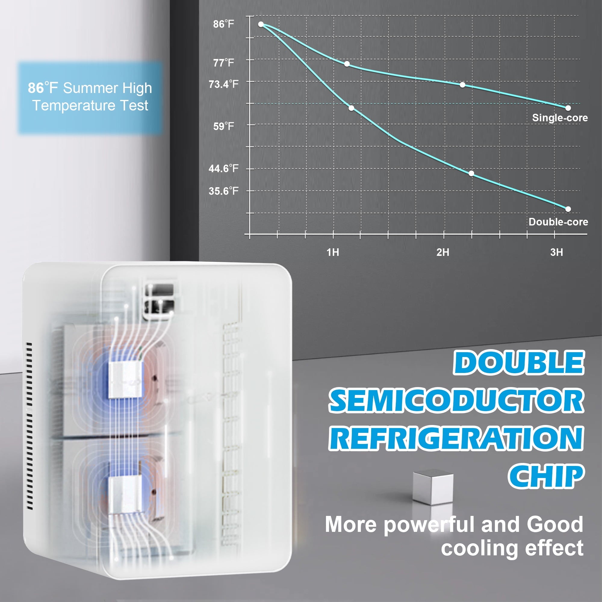 - Efficient Cooling: The Upgrade Dual-Core Refrigeration System helps in providing effective cooling by circulating the cold air evenly throughout the mini fridge box. This ensures that the contents inside the box are cooled quickly and efficiently. Cooler and more energy saving than previous mini fridge.