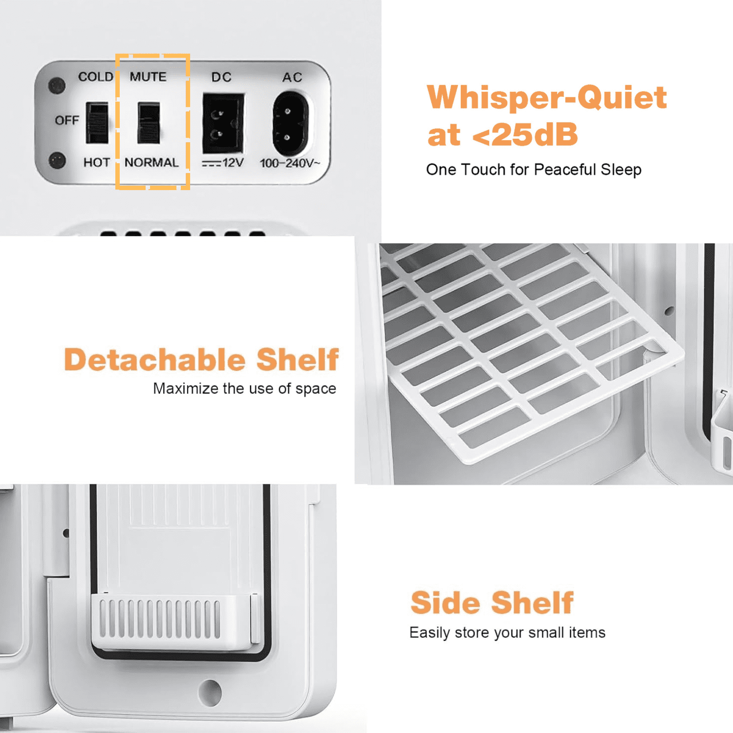 • Your Good Choice: The small beverage refrigerator is quiet and low-noise, and the 25dB ultra-quiet operation does not affect your work or rest. And the removable shelf design makes small items like drinks, masks, perfume, face cream easy to store separately. It’s the best gift for your family and friends.