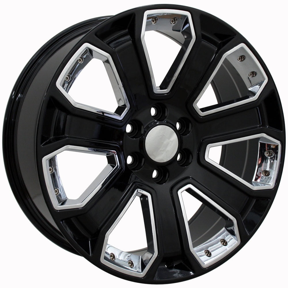 This listing is for a set of four CV93 black with chrome inserts 22×9 replica 5660 wheels, 285/45R22 Ironman iMove SUV tires, and TPMS sensors SET. Designed to fit the Chevy Silverado, Tahoe, Suburban, GMC Sierra, Yukon and other compatible vehicles. Please check our fitment tab for specific year-make-model applications and will-not-fit exceptions before ordering. Set will ship mounted and balanced.