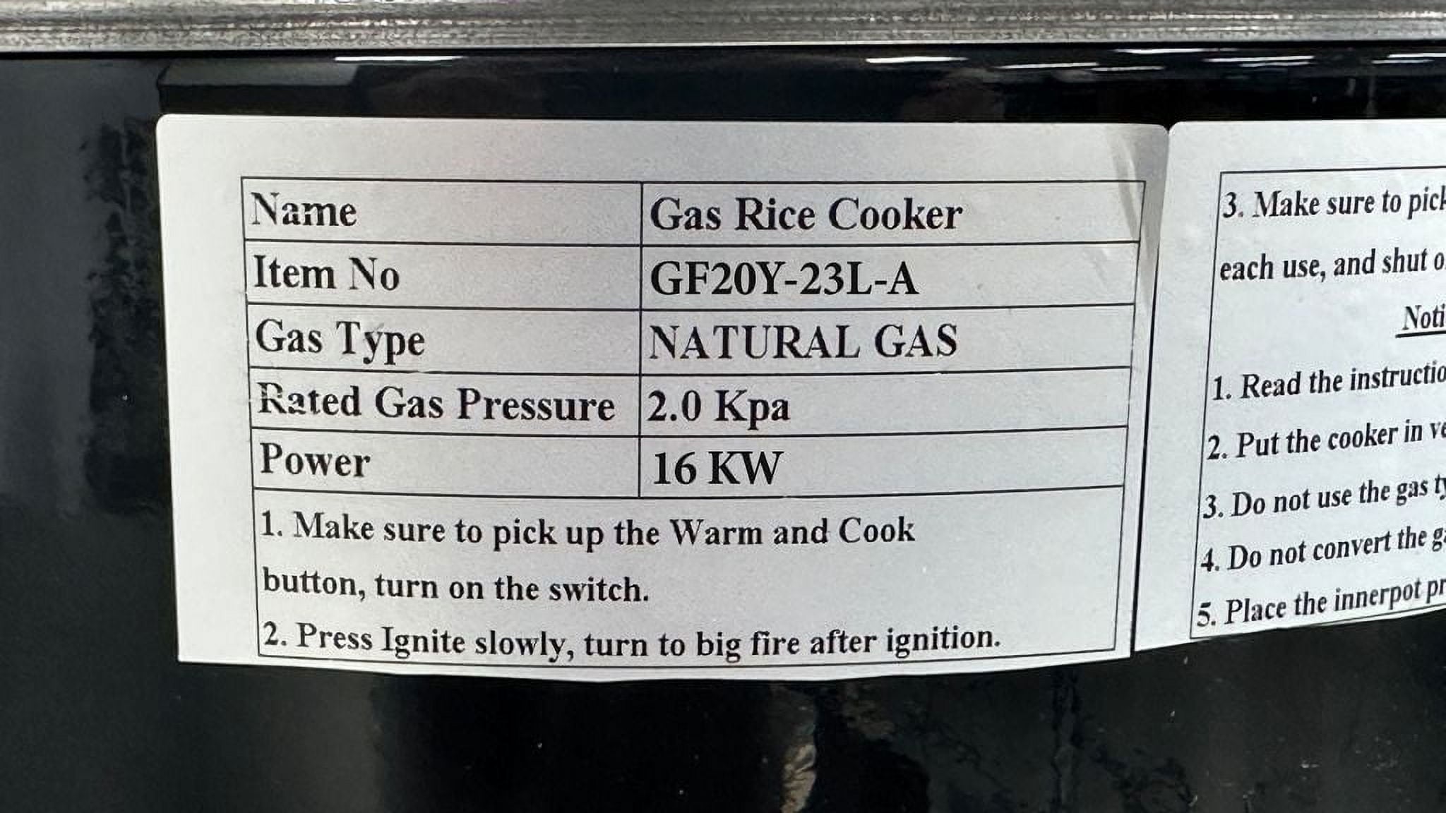 This powerful 23L commercial gas rice cooker from Elite Kitchen Supply offers a 1600W capacity, making it an ideal choice for restaurants and commercial kitchens. With its compact dimensions of 26″W x 22.7″D x 18″H, it can easily fit in your kitchen space. Featuring a 2.0Kpa rated gas pressure, this rice cooker ensures efficient and consistent cooking results. Backed by a comprehensive warranty, including 1 year for all parts and 2 years for the compressor, you can trust this durable and reliable appliance to meet your high-volume cooking needs.