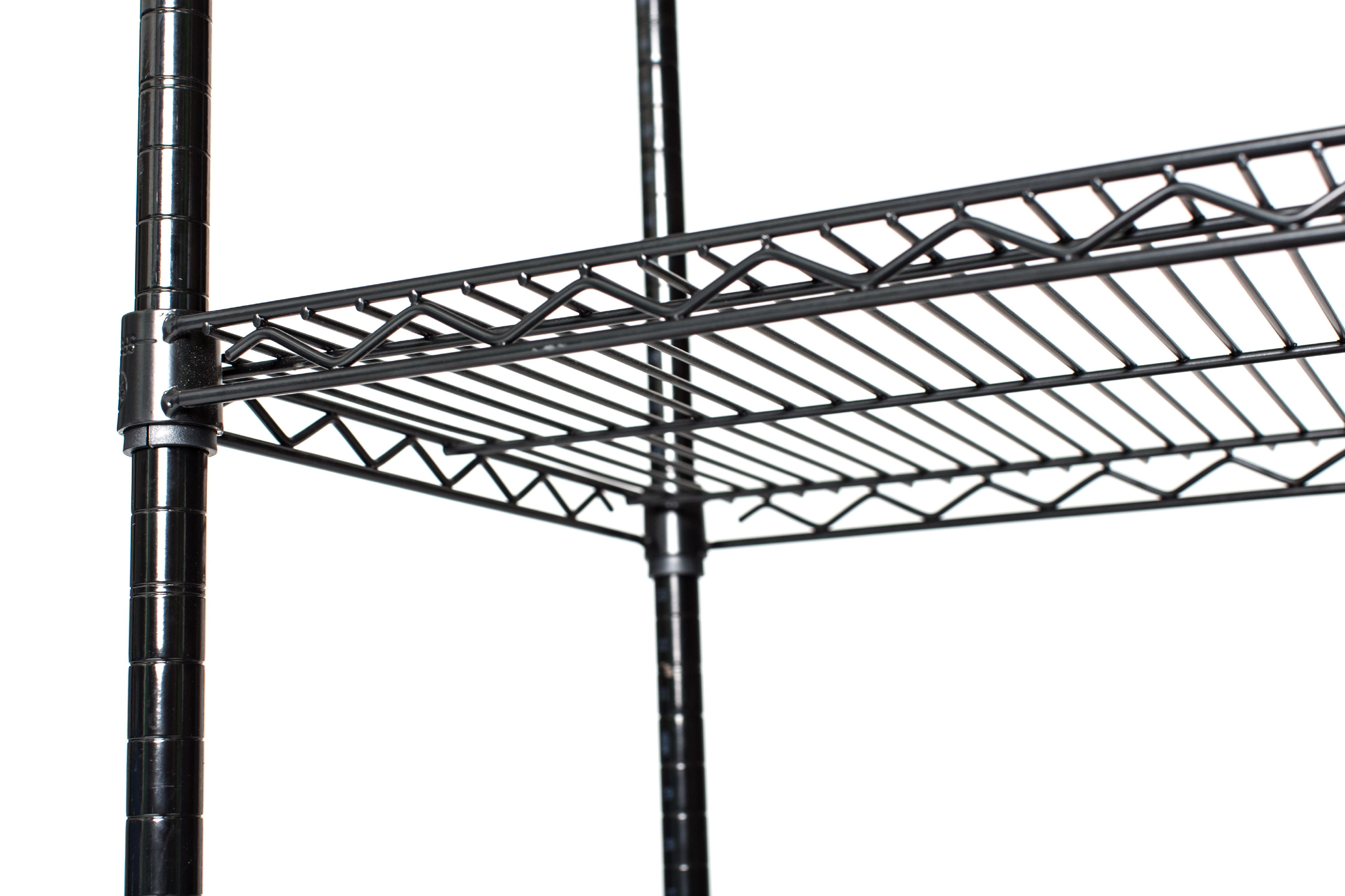 Each individual Black Wire Shelf includes necessary clips. Add shelves to an existing wire unit or customize to your specifications with our solid one piece black posts. Top quality.