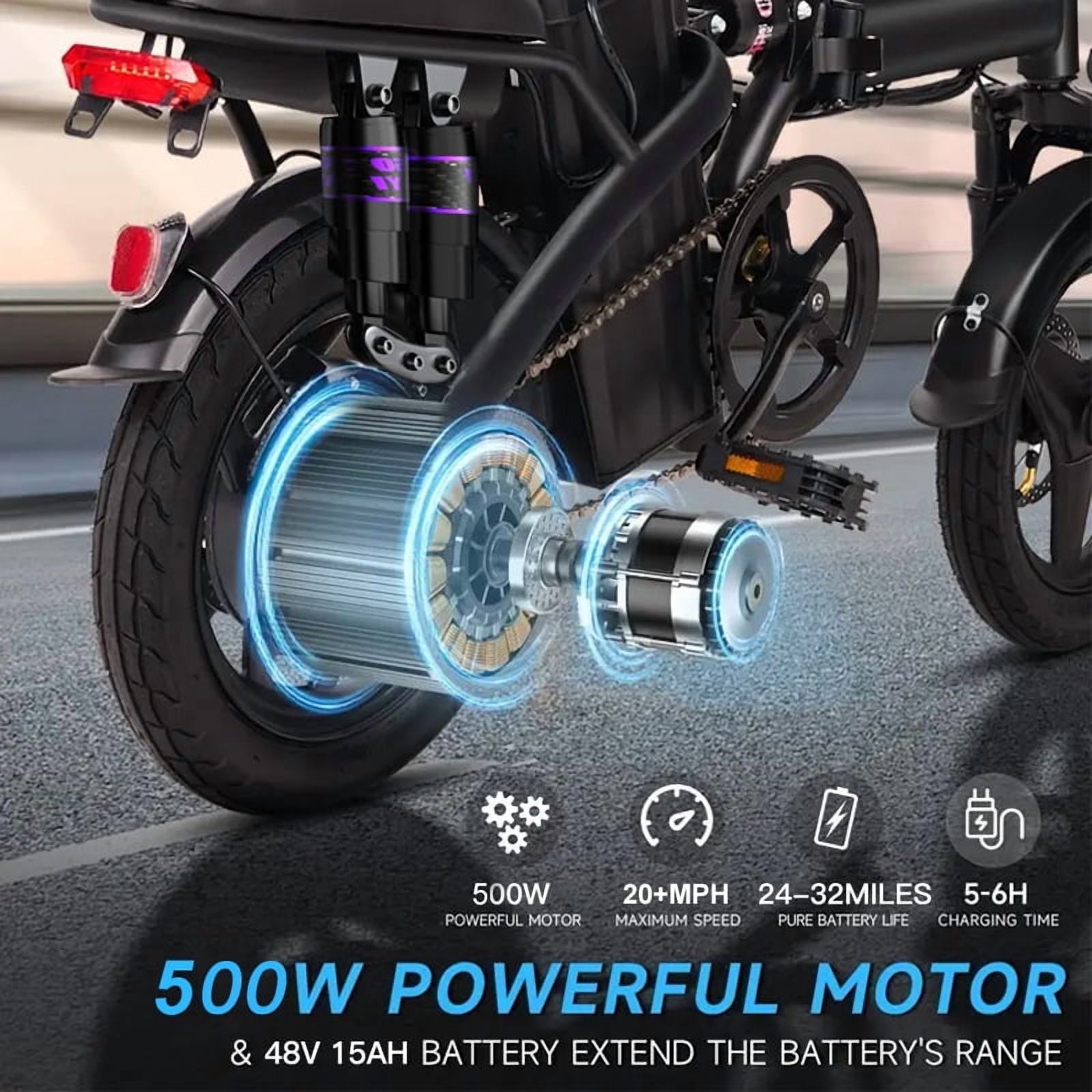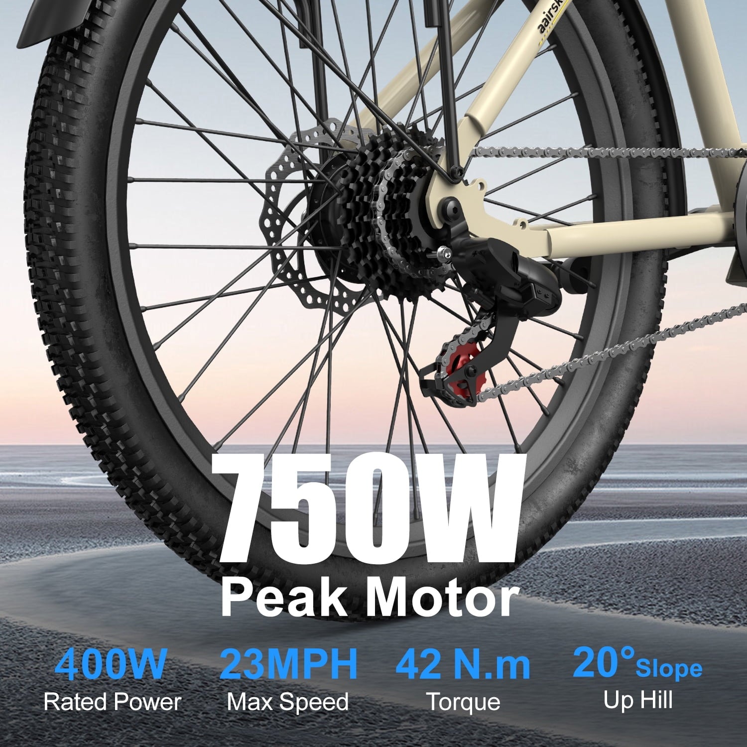 - 750W Peak Motor (400W rated) for hill-climbing power