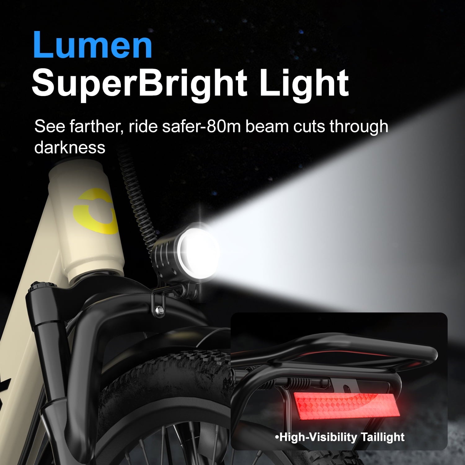 - Bright LED Headlight + Rear Reflector for night safety