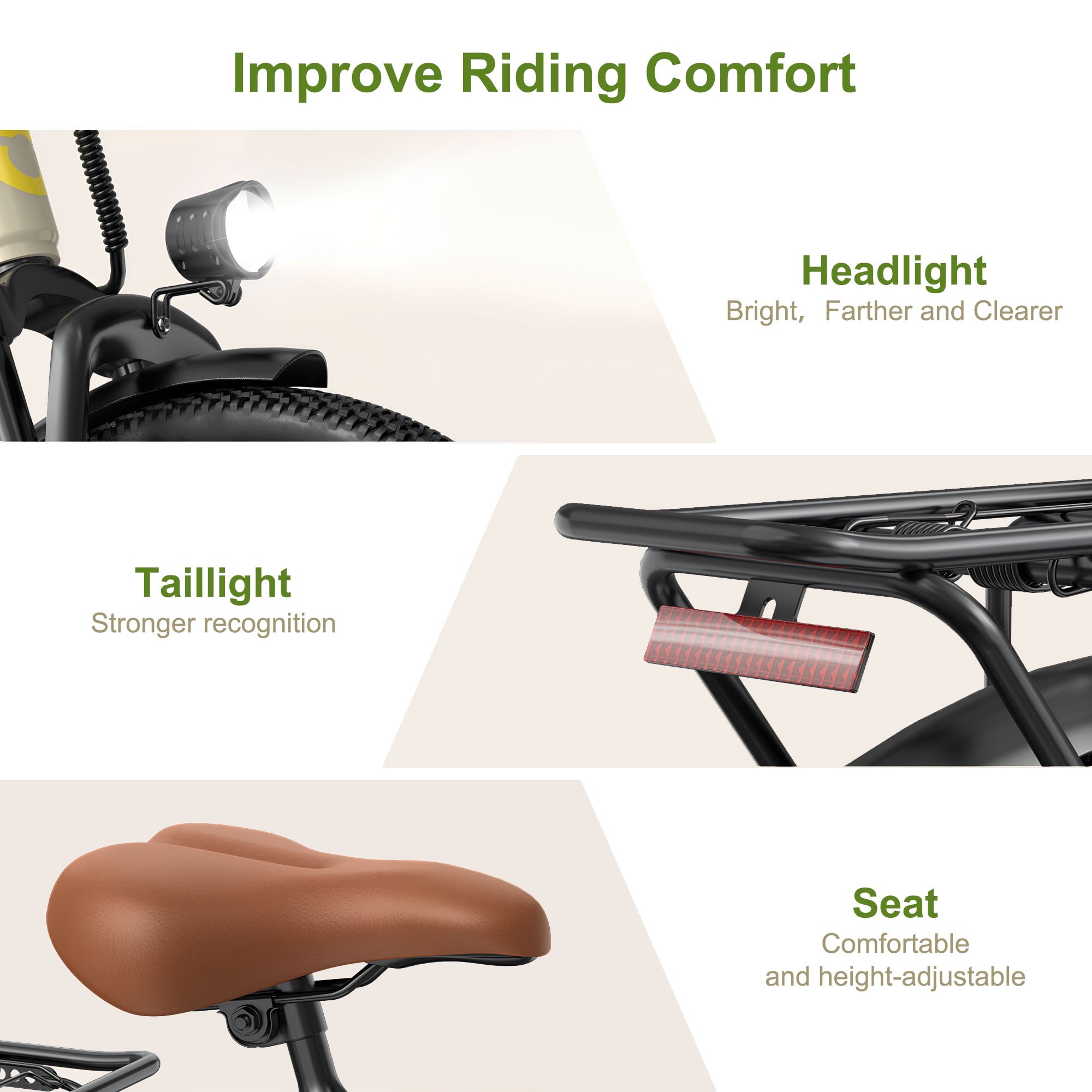 • Includes a bright LED headlight and a reflective rear taillight for enhanced visibility and night safety.
