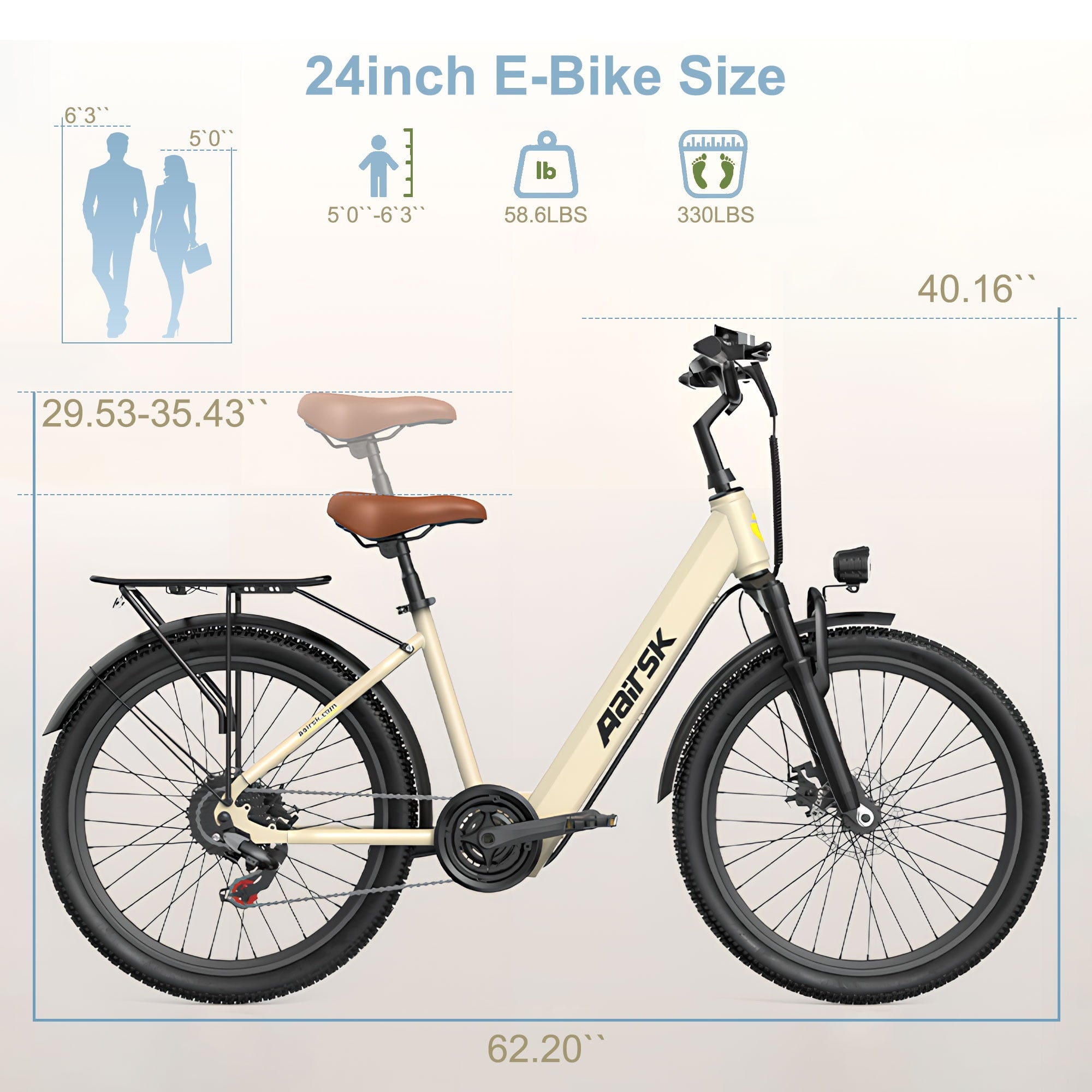 • Features a professional Shimano 7-speed gear system for effortless hill climbs.
