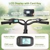 This 24-inch electric mountain bike for adults is ideal for both city commuting and adventurous trails, featuring a rugged high-carbon steel frame for durability. It is powered by a 400W motor with a 750W peak, reaching speeds up to 23 MPH. The 36V 13AH lithium-ion battery offers an impressive range of up to 40 miles with pedal assist or 23 miles in full-electric mode. Enjoy a smooth and comfortable ride thanks to the professional Shimano 7-speed gear system and a front suspension fork. For safety, it includes dual mechanical disc brakes, a bright LED headlight, and a rear reflector. The smart NFC-enabled LCD display provides keyless start and monitors speed, battery, and distance.