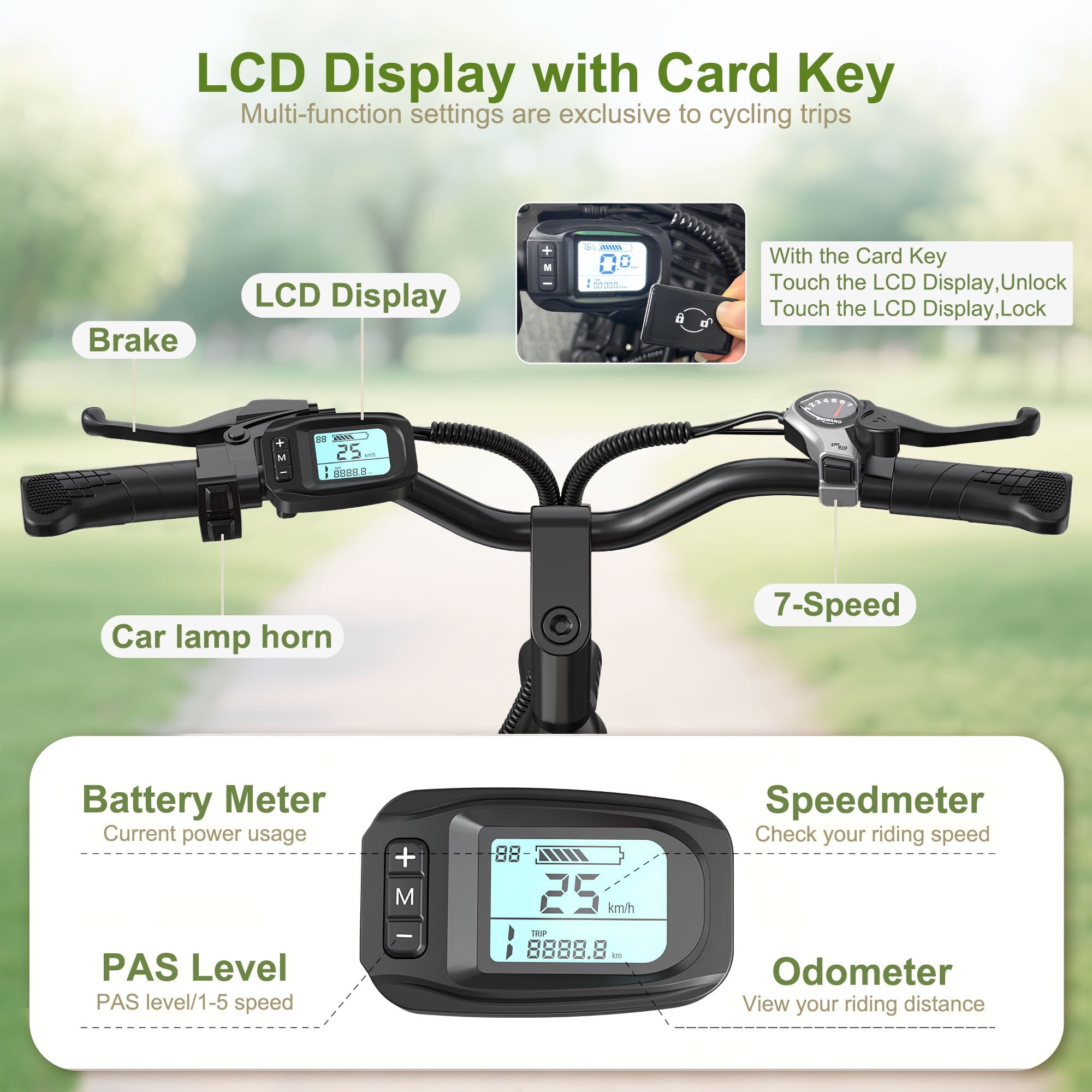 • Features a smart NFC-enabled LCD display for instant keyless start and monitoring of speed, battery, and distance.