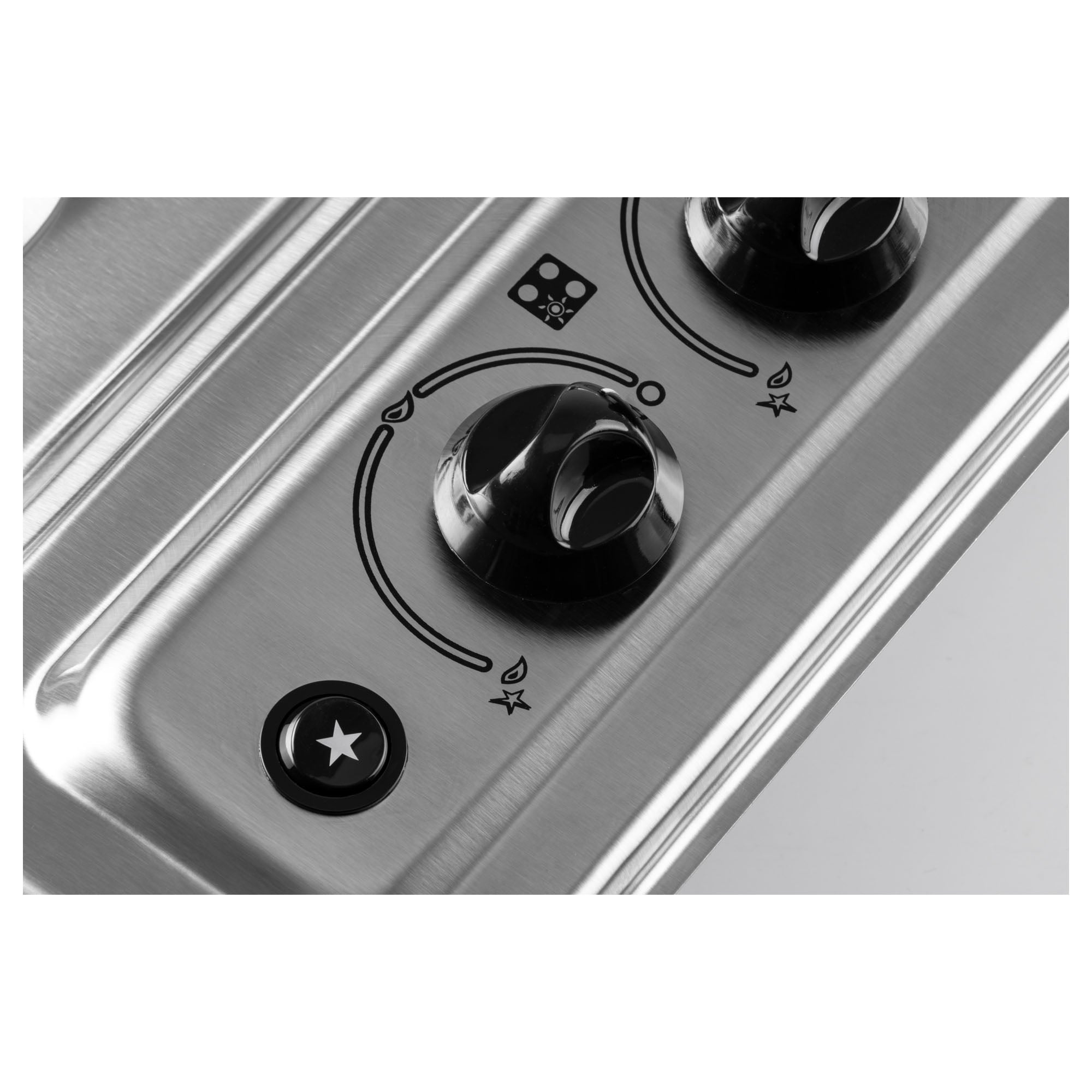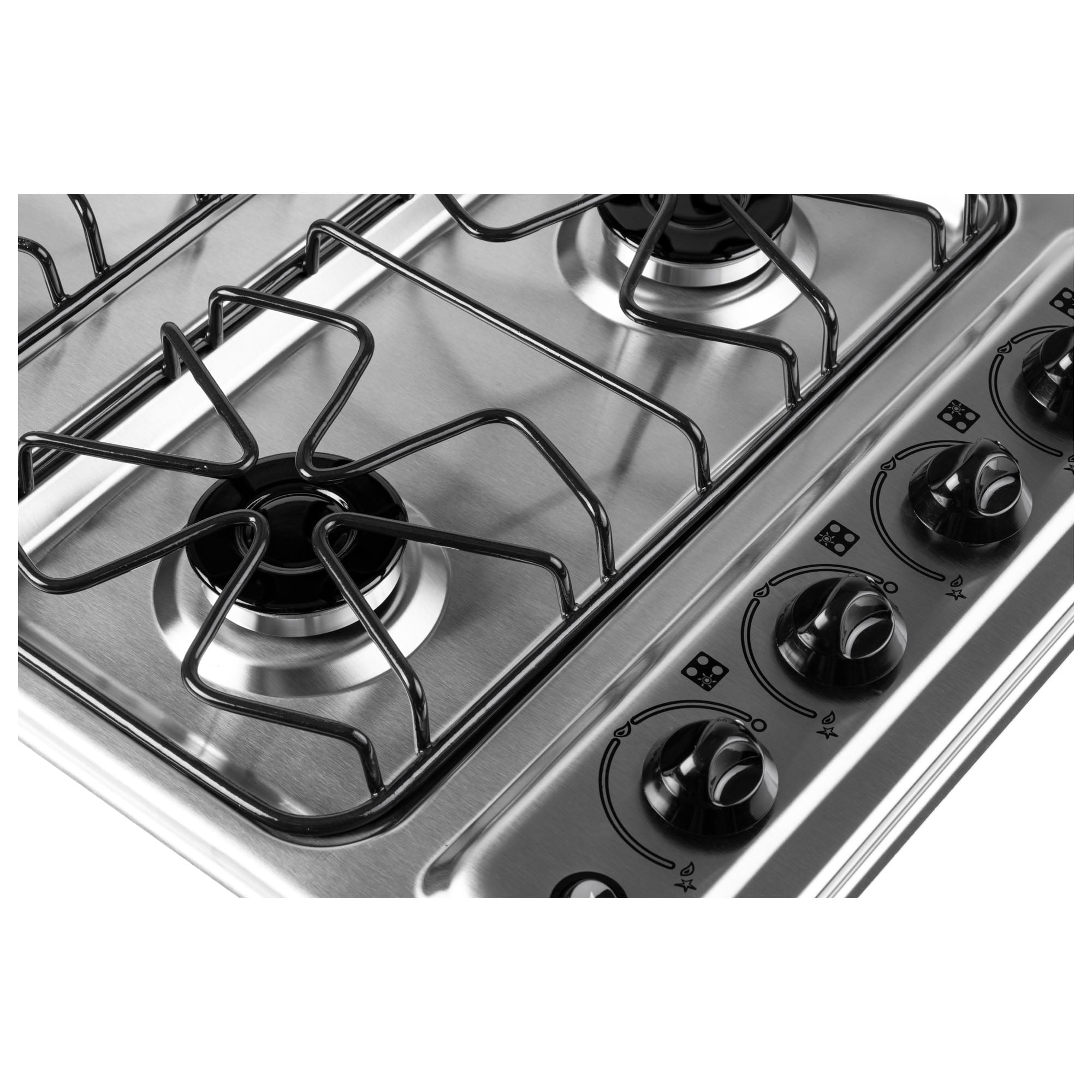 - Gas-powered stovetop with 3 fast burners and 1 ultra-fast center burner