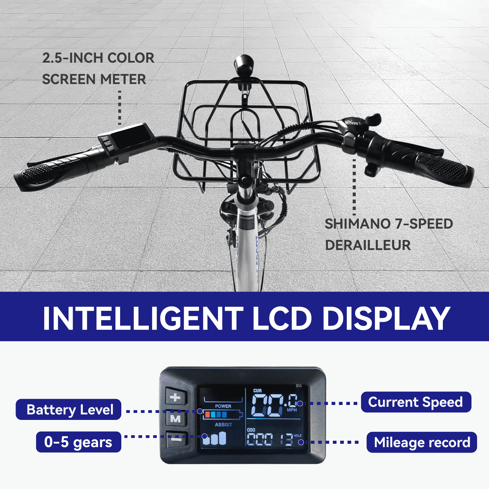 - Headlights & Taillights, and Intelligent LCD Display, ensure your safety at night.