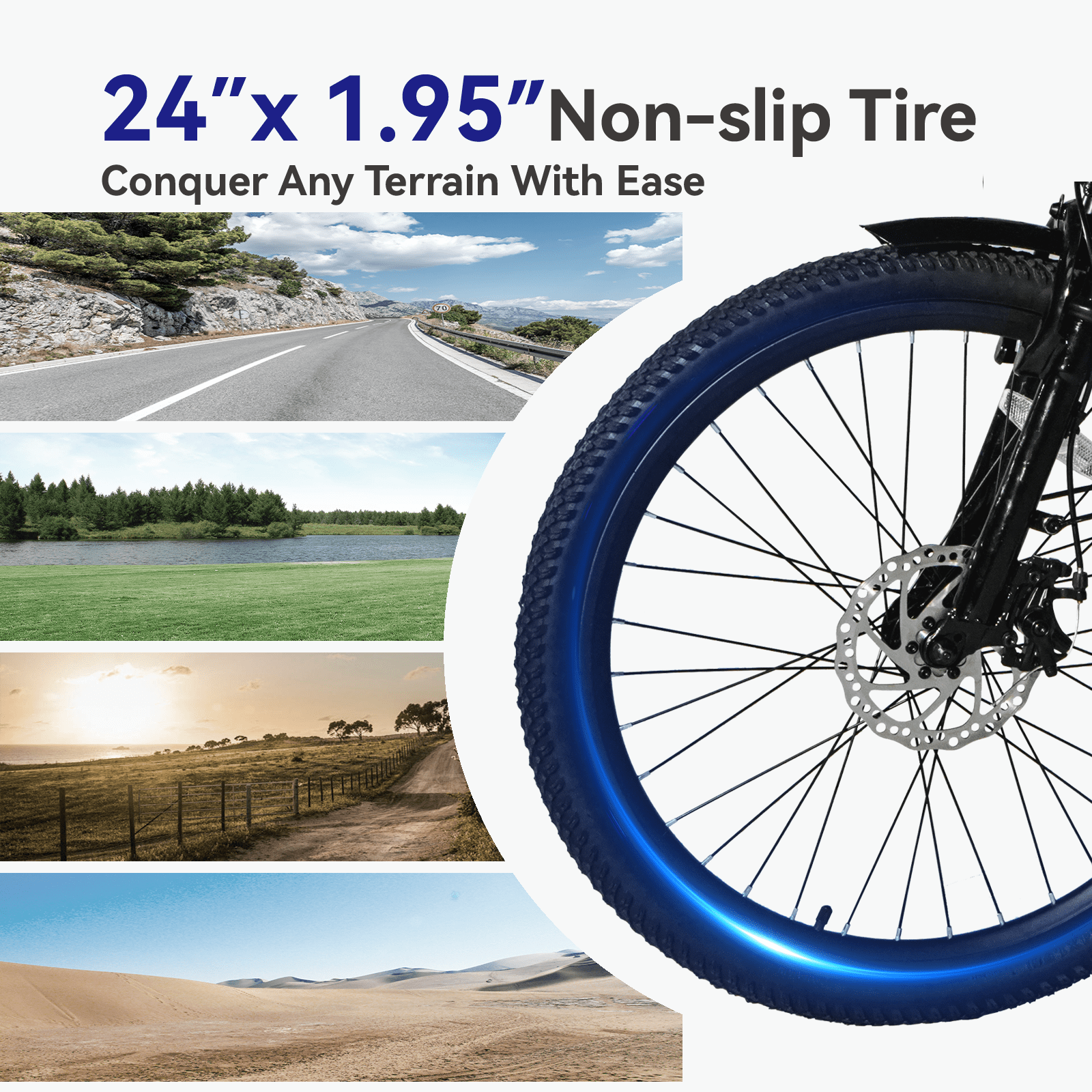 - Anti-Vibration Tires, high-quality shock absorber and 7-speed transmission, adapting to more bumps and no pressure 25° climb.