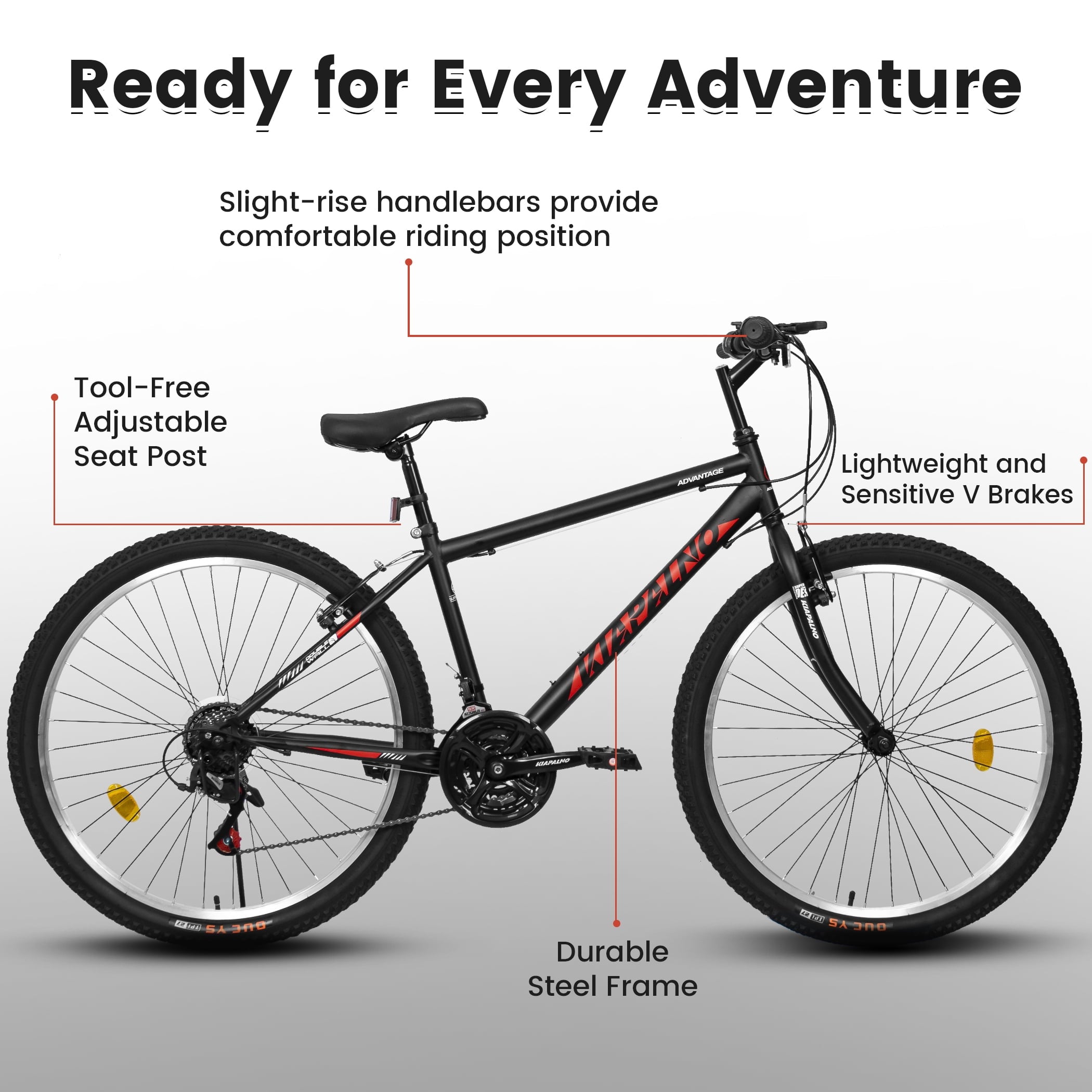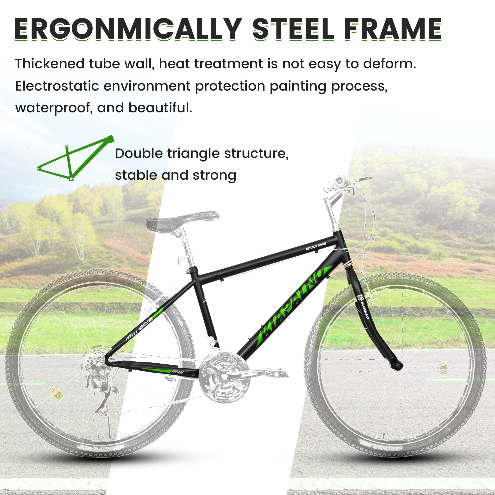 - [Entry-Level Performance with Affordability and Functionality] This mountain bike is specifically designed for newcomers to the sport, striking a perfect balance between cost-effectiveness and practical features. Its durable and stable steel frame ensures a safe and steady riding experience, making it an perfect choice for those just starting their mountain biking journey.