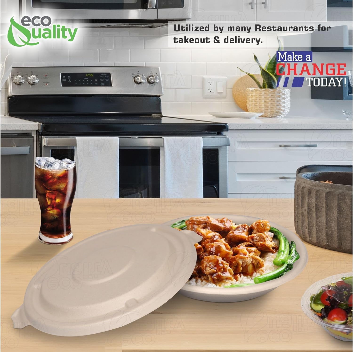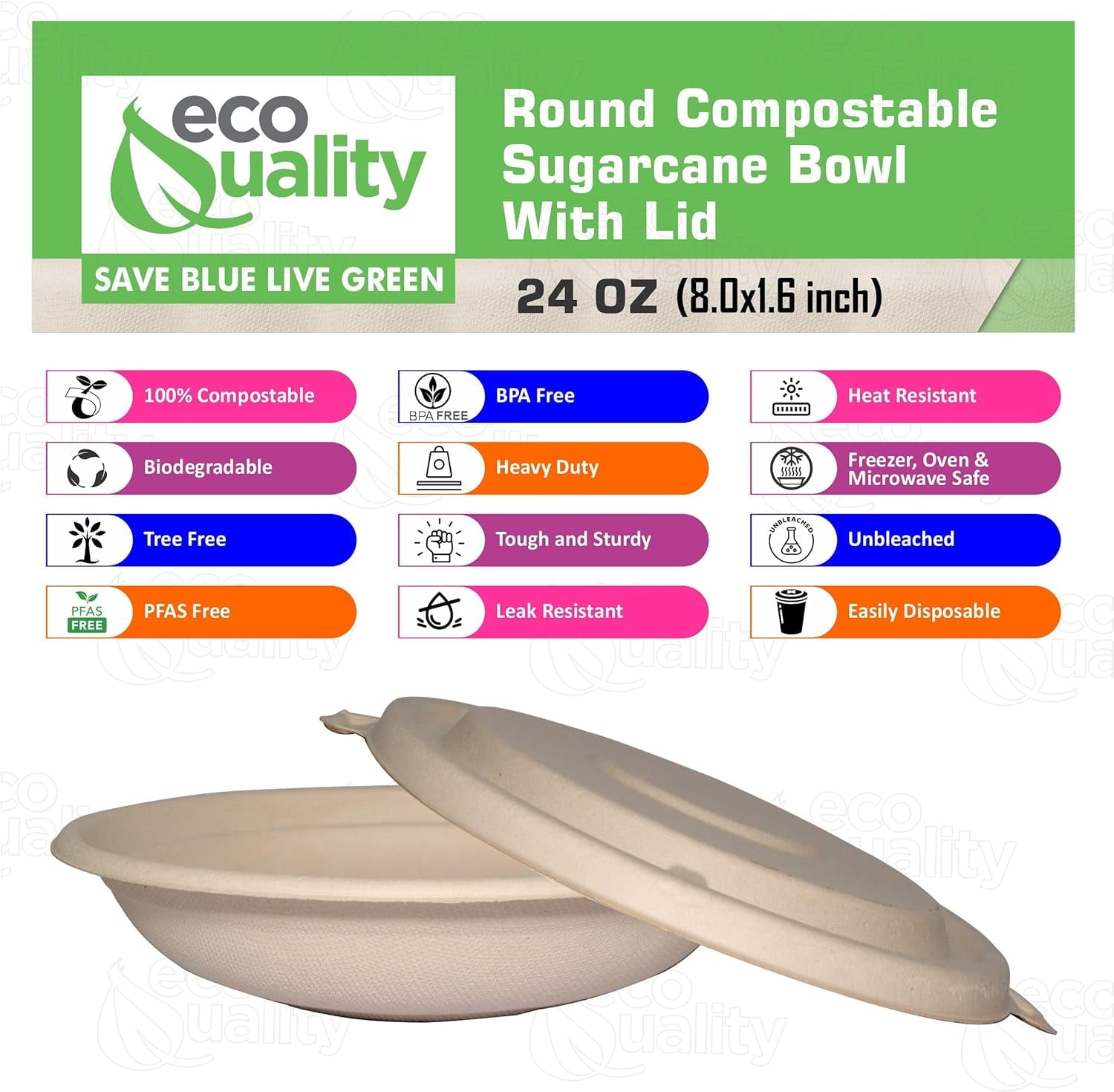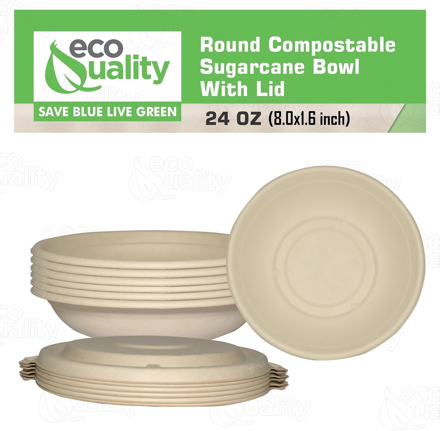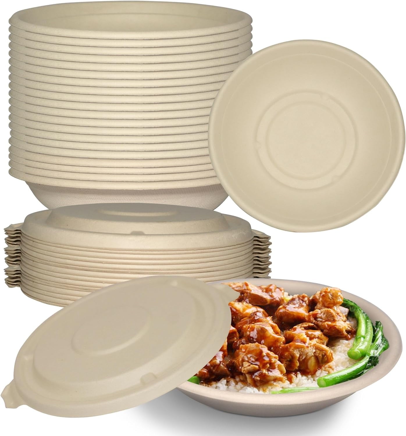 - MATERIAL: This Twenty Four Ounce Round Bowls are made from a 100% sugarcane fiber, a sustainable, renewable, and biodegradable material. An amazing alternative to Traditional Plastic or Paper. This disposable bowl offers the same easy cleanup and sturdy function while being completely tree and plastic free. Lid and bowl are both made from the same material.